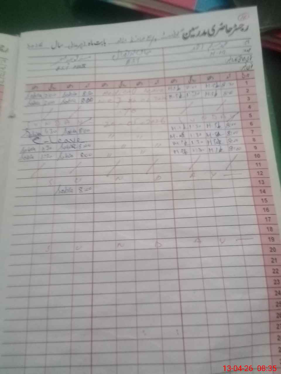 | CNIC | Full Name | Designation | R/C | Absence During Last Calender Month |