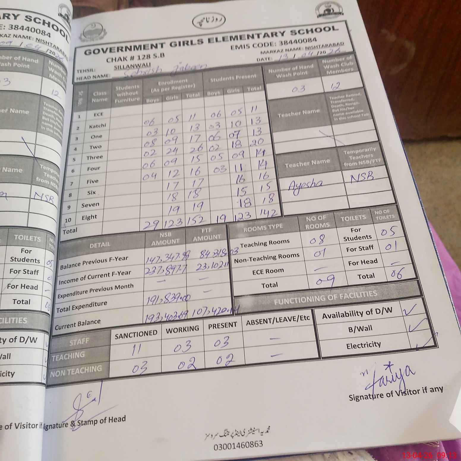| EMIS Code: 38440084 | Name of School: GGES CHAK NO.128 SB | |||