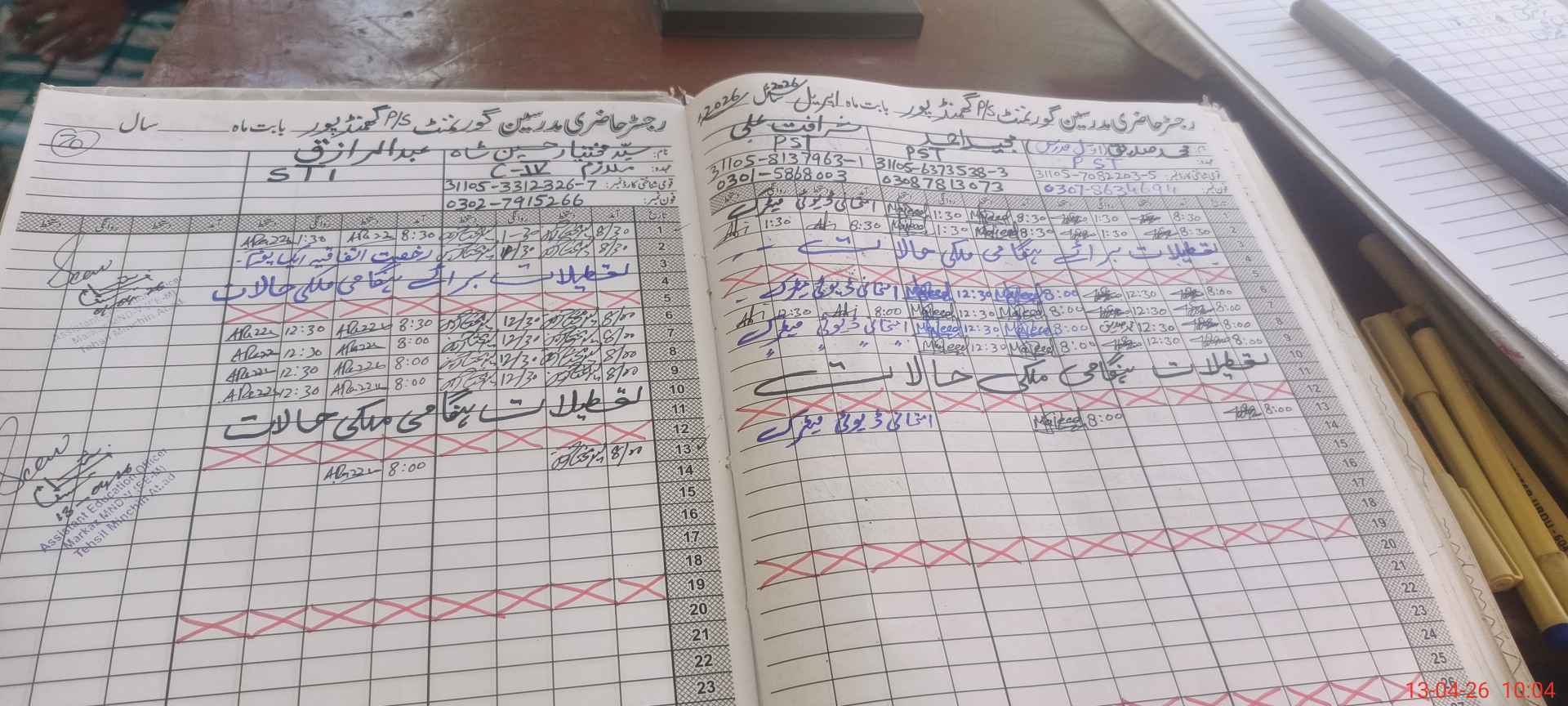 | Name: MU**** Sa**** Designation: (School Headmaster's/Headmistress's) PST Phone/Cell Number: 03**** |
