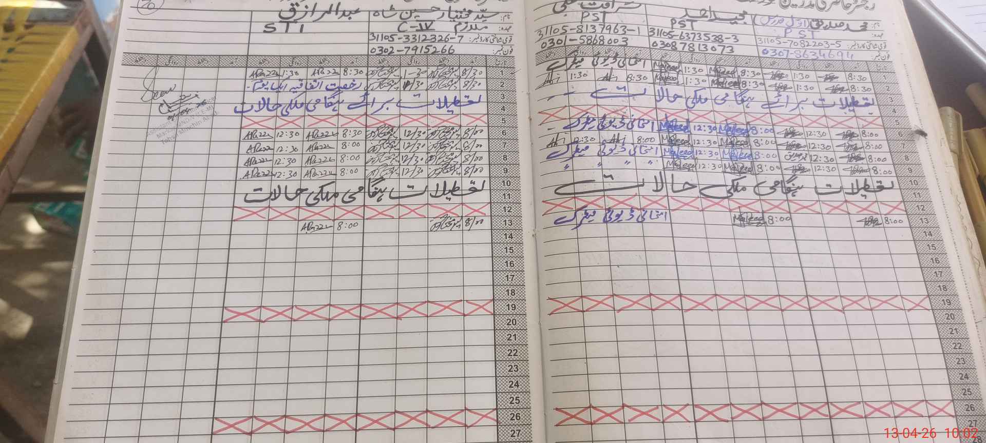 | CNIC | Full Name | Designation | R/C | Absence during last cal. month |