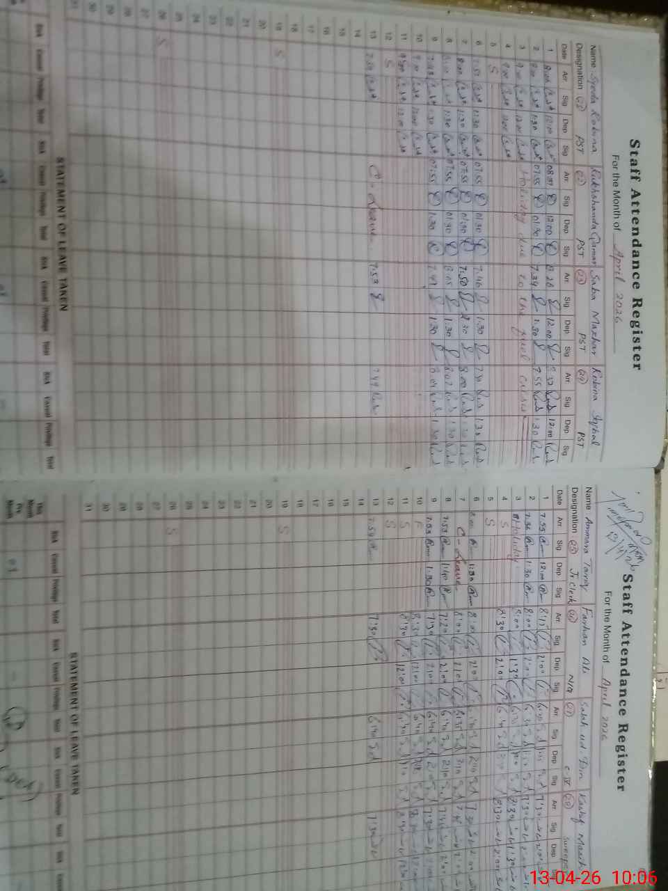 | Monitoring Date: 13-04-2026 | Start Time: 13-04-2026 09:23 AM | End Time: 13-04-2026 10:07 AM | Name of MEA: Ta**** Me**** | |