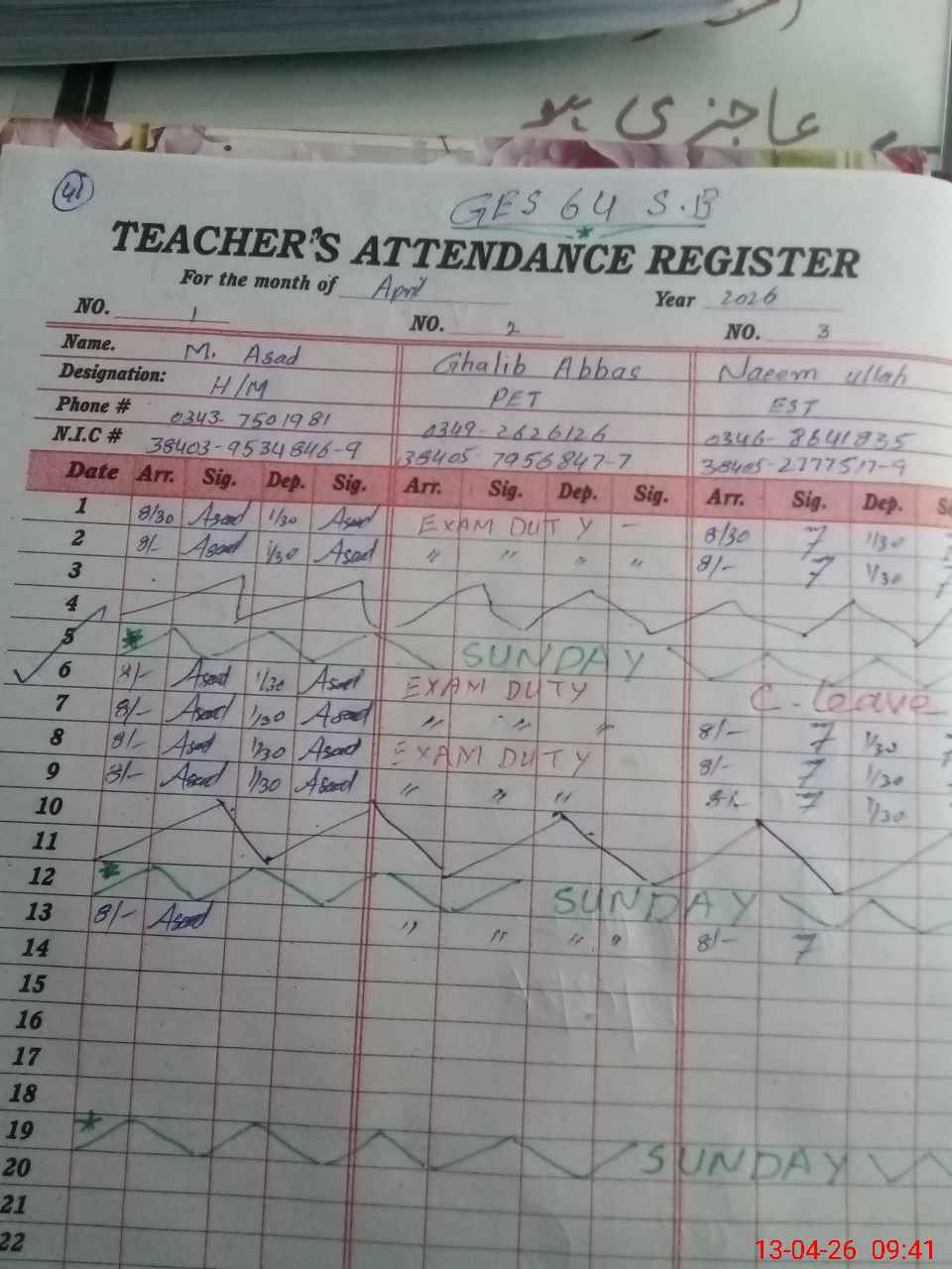 | 38**** | Gh**** Ab**** | EST Physical Education | Regular | 3 | 0 | 0 | 0 | 0 | 0 | 0 | 0 | 3 | Exam Duty |