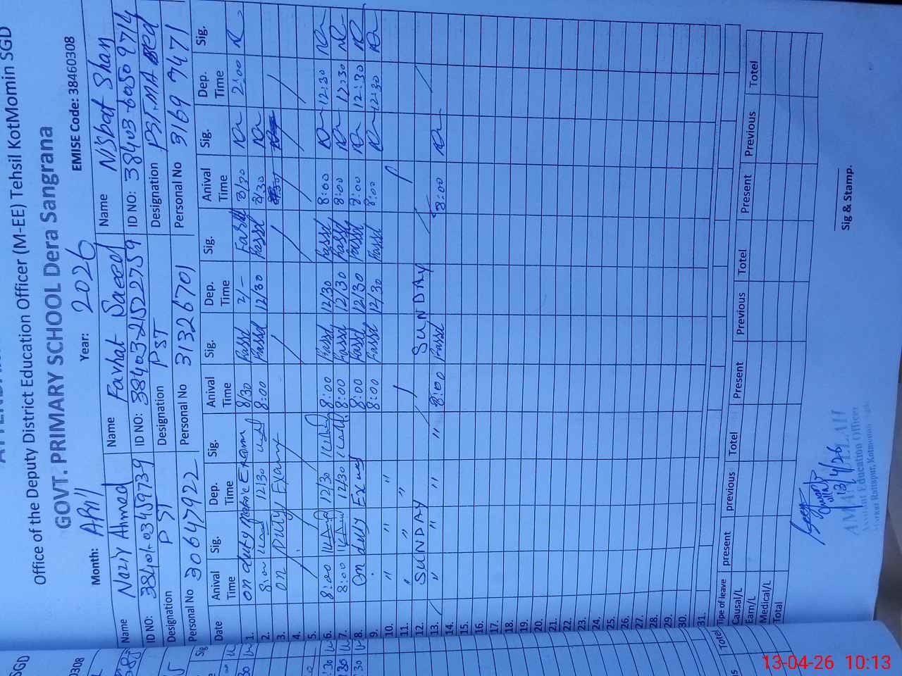 | 38**** | Na**** Ah**** | PST Arts | Regular | 0 | 0 | 0 | 0 | 0 | 0 | 0 | 0 | 0 | Exam Duty |