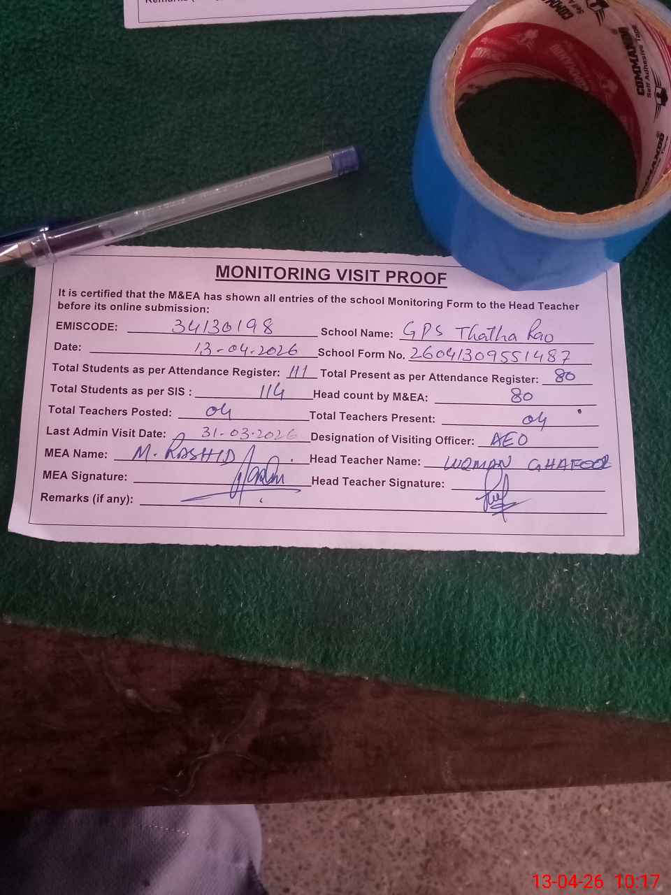 | EMIS Code: 34130198 | Name of School: GPS THATHA RAO | |||