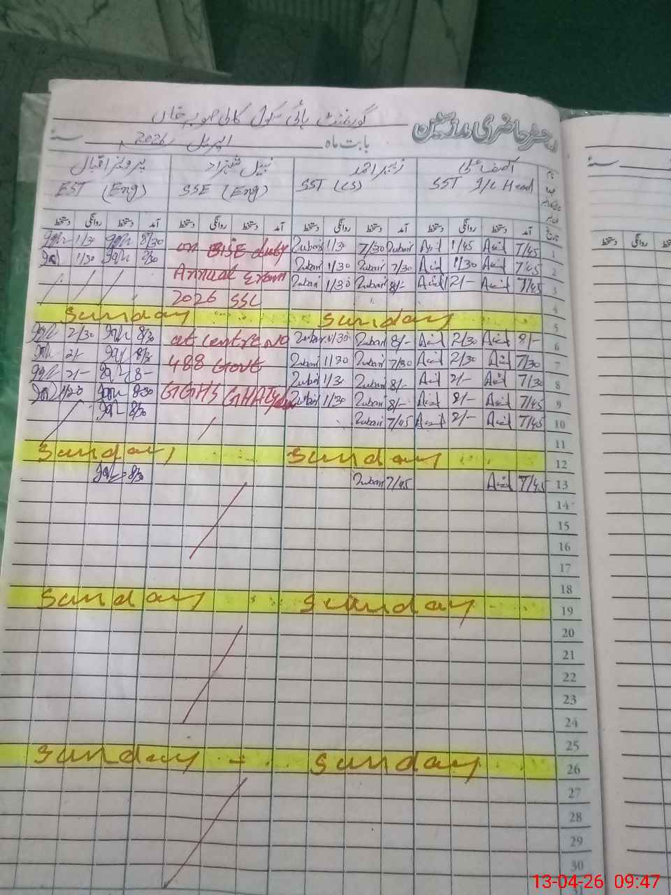 | 34**** | Na**** Sh**** Ma**** | SSE English | Contract | 0 | 0 | 0 | 0 | 0 | 0 | 0 | 0 | 0 | Exam Duty |