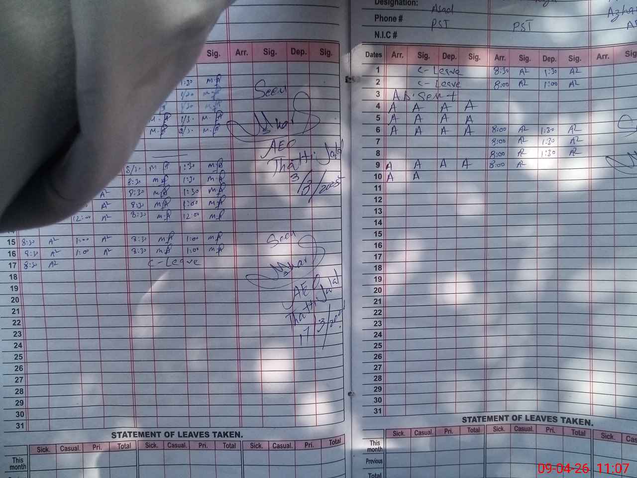 | 38**** | Mu**** As**** | PST | Regular | 0 | 0 | 0 | 0 | 0 | 0 | 0 | 0 | 0 | Absent (Un-Authorized) |