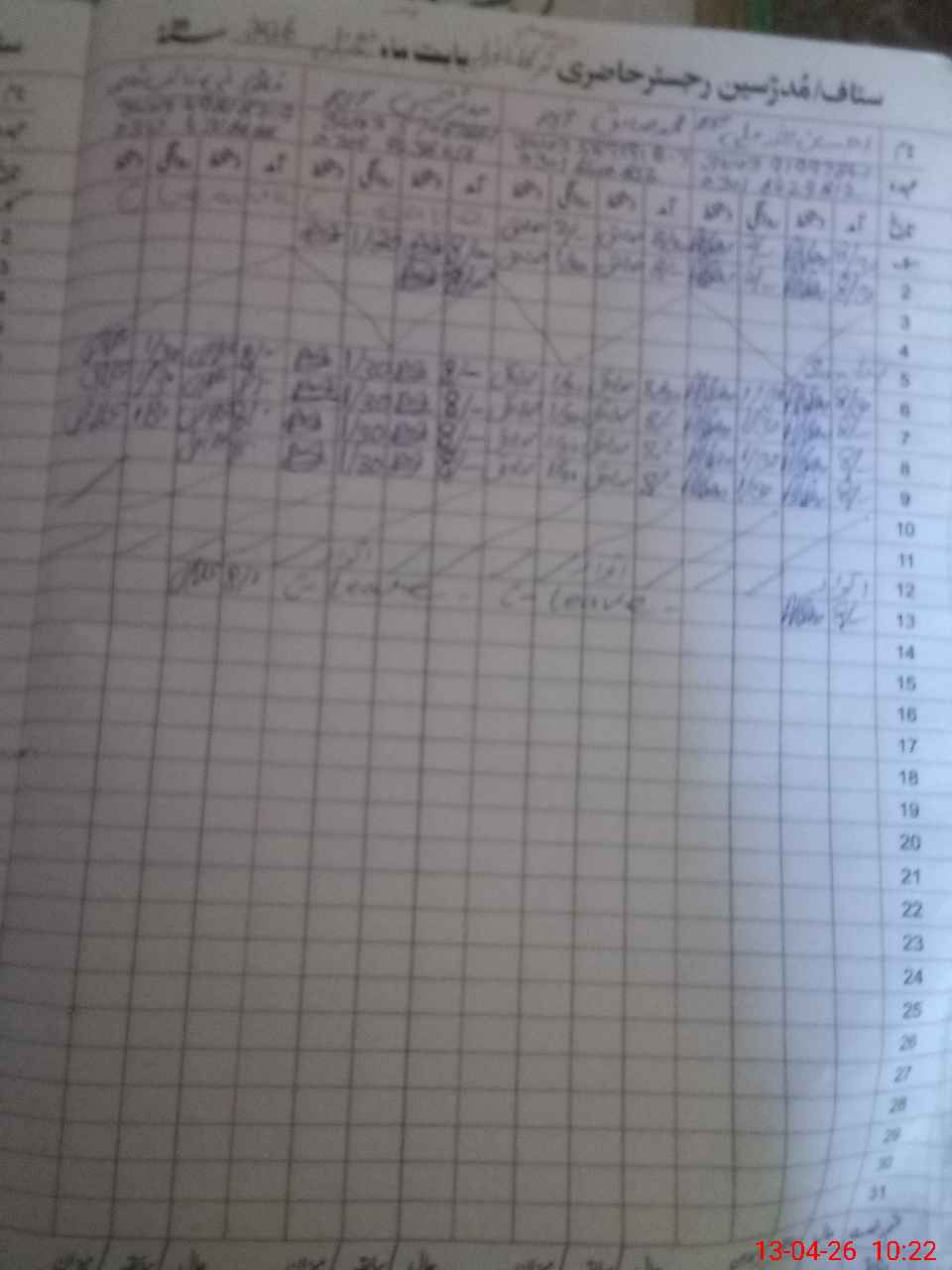 | CNIC | Full Name | Designation | R/C | Absence During Last Calender Month |