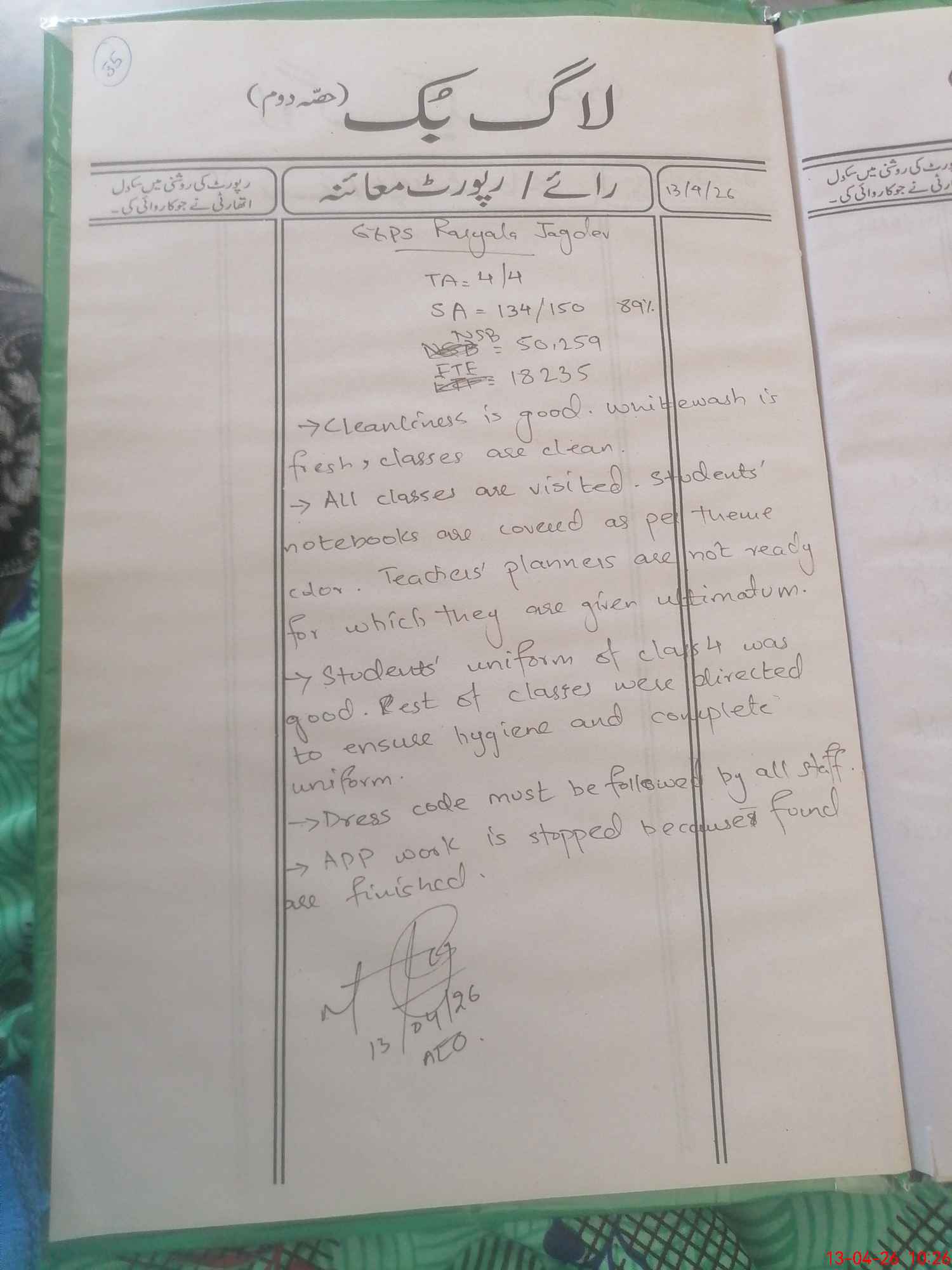 | Certified that this School was Inspected by the Undersigned MEA/DMO Today and the Information Stated Above is as Per Record. | |||||