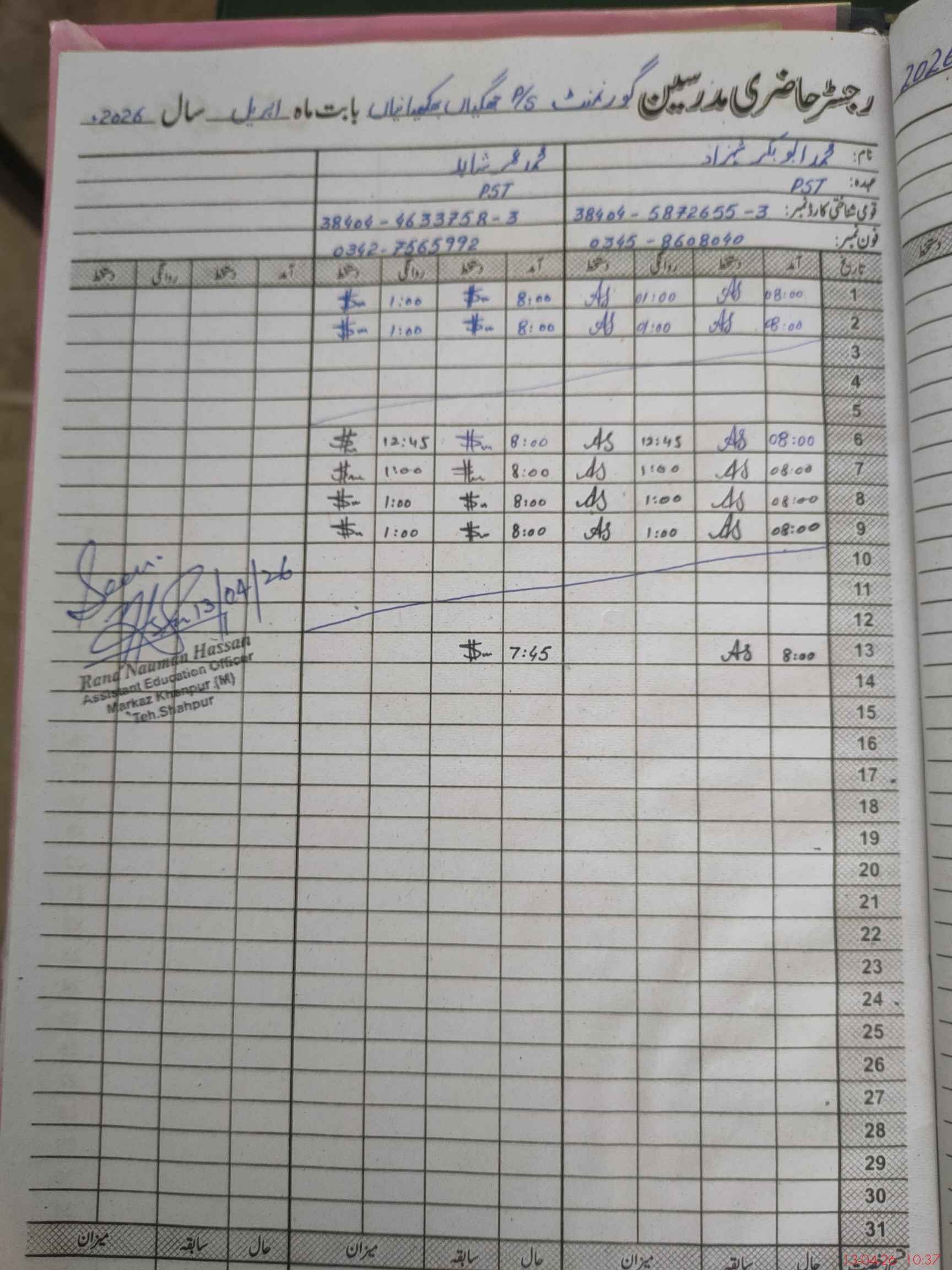 | Name: MU**** AB**** SH**** Designation: (School Headmaster's/Headmistress's) PST (Sc - Math) Phone/Cell Number: 03**** |