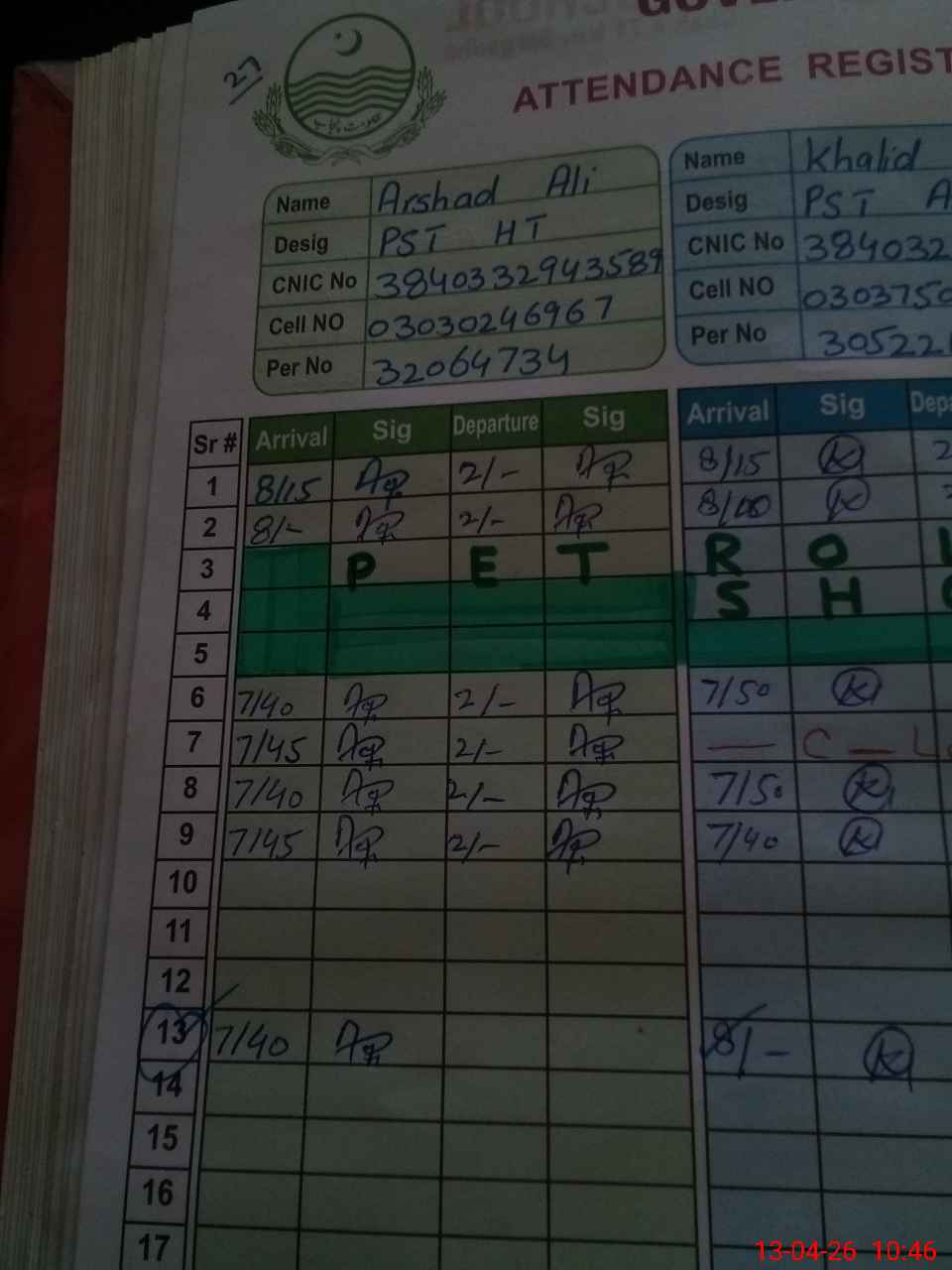 | Name: AR**** AL**** Designation: (School Headmaster's/Headmistress's) PTC Phone/Cell Number: 03**** |