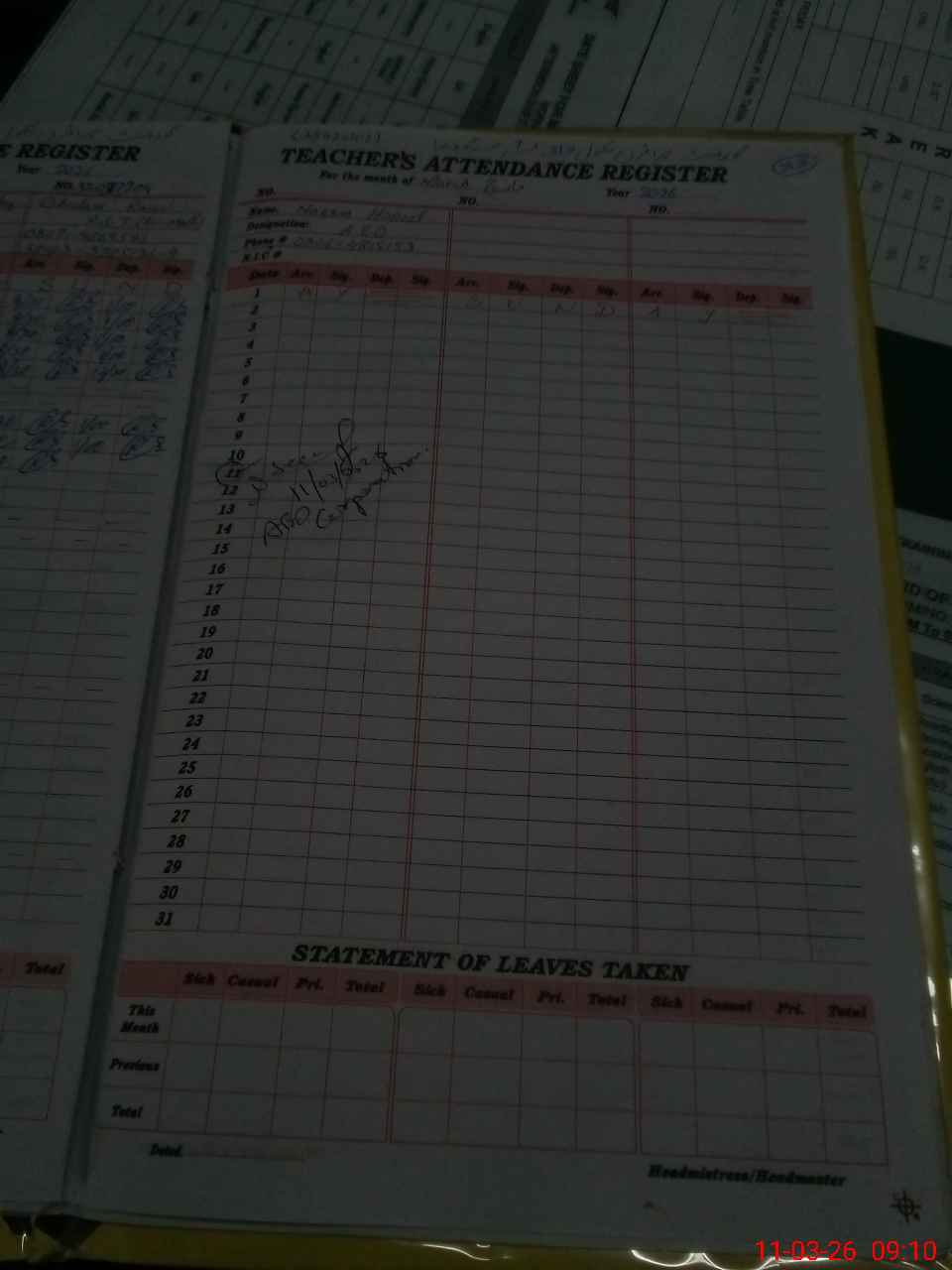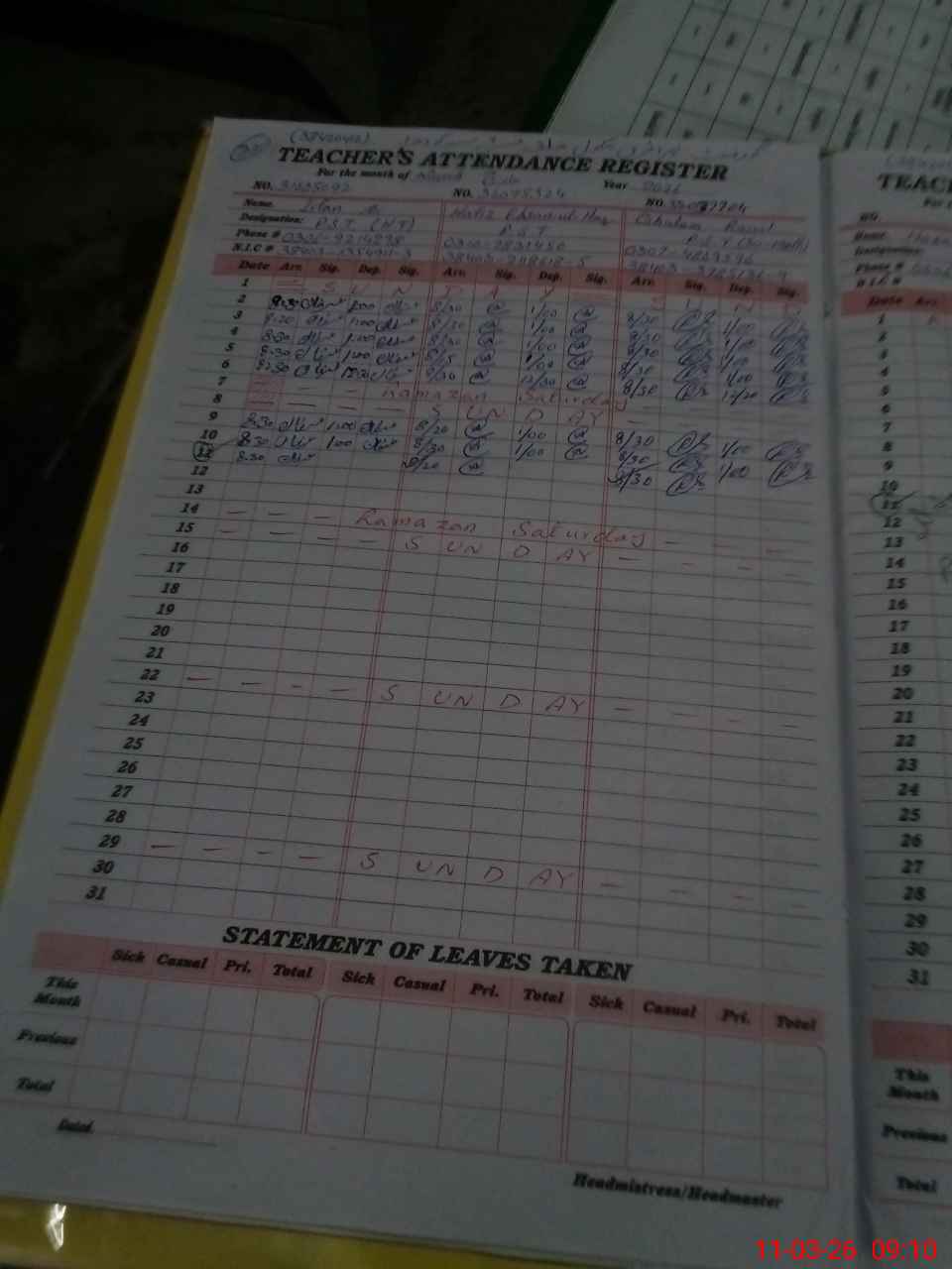 | Name: IR**** AL**** Designation: (School Headmaster's/Headmistress's) PST Phone/Cell Number: 03**** |