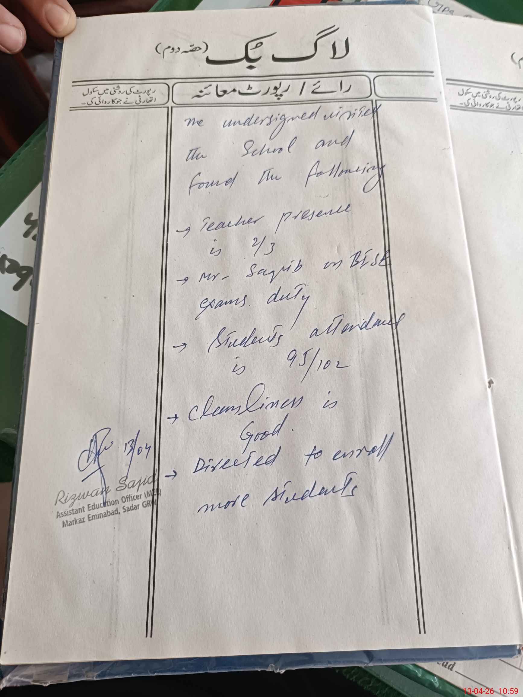 | Certified that this School was Inspected by the Undersigned MEA/DMO Today and the Information Stated Above is as Per Record. | |||||