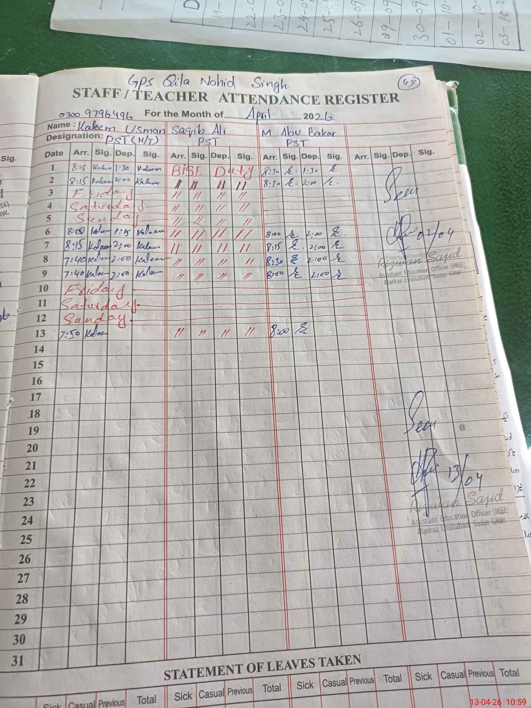 | Name: Ka**** Us**** Designation: (School Headmaster's/Headmistress's) PST Phone/Cell Number: 03**** |