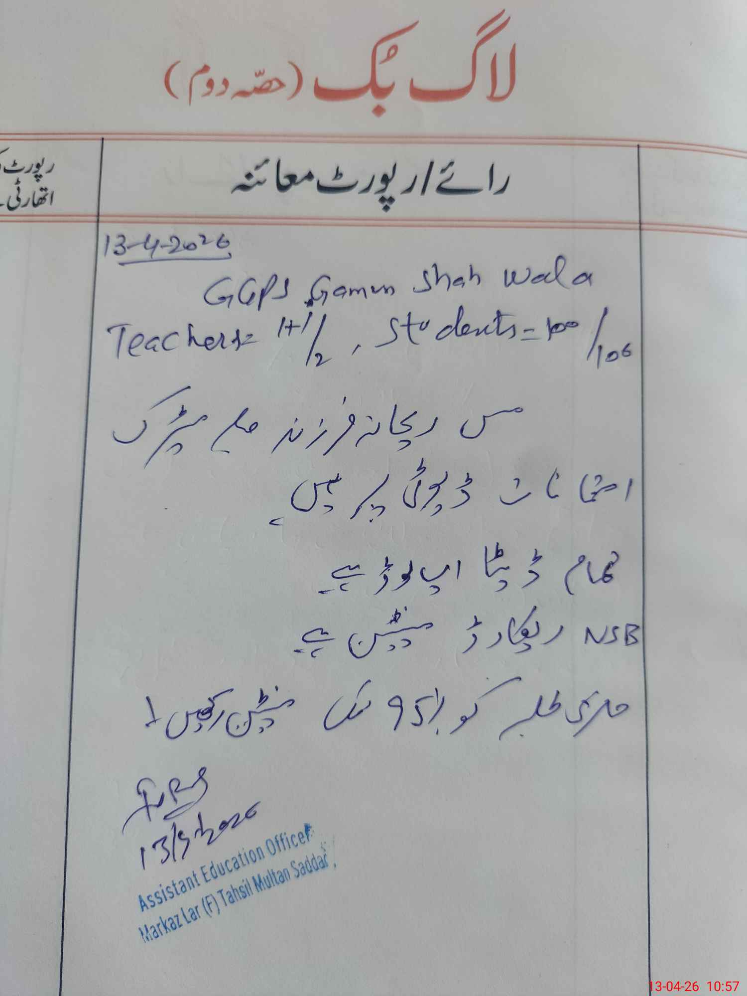 | EMIS Code: 36130506 | Name of School: GGPS GAMON SHAH WALA | |||