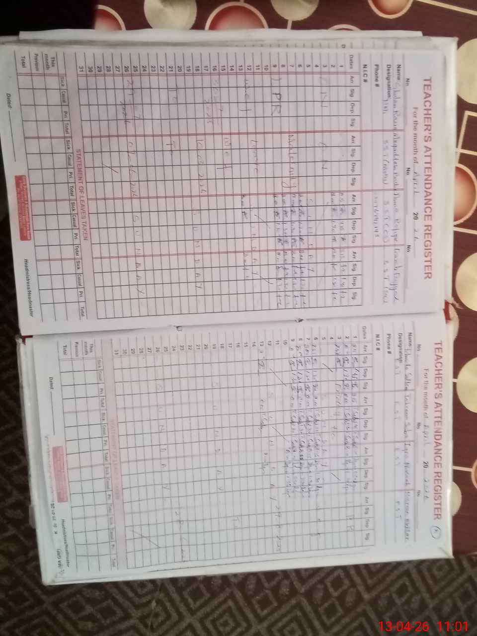 | 61**** | Mu**** Am**** Kh**** | Temporary | 1 | 0 | 0 | 0 | 0 | 0 | 0 | 0 | 1 | Absent (Un-Authorized) | |