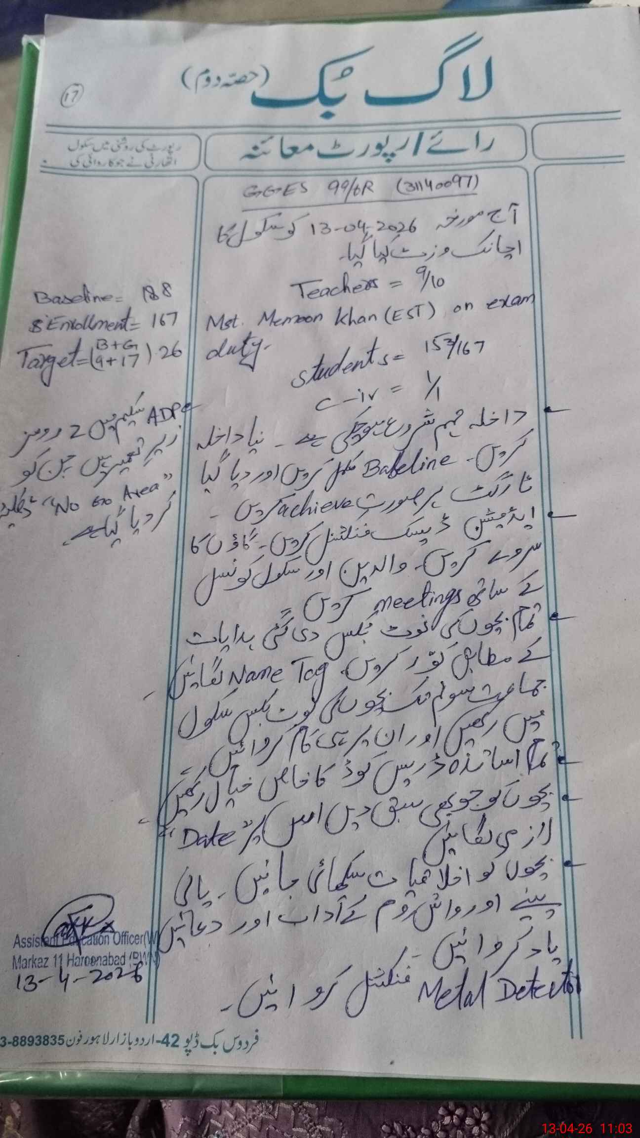 | Attendance Register | Head Teacher | MEA with School | Visit Proof |
