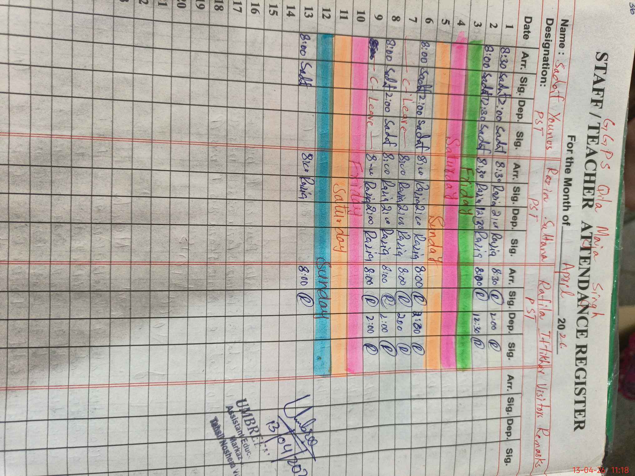 | Attendance Register | Head Teacher | MEA with School | Visit Proof |