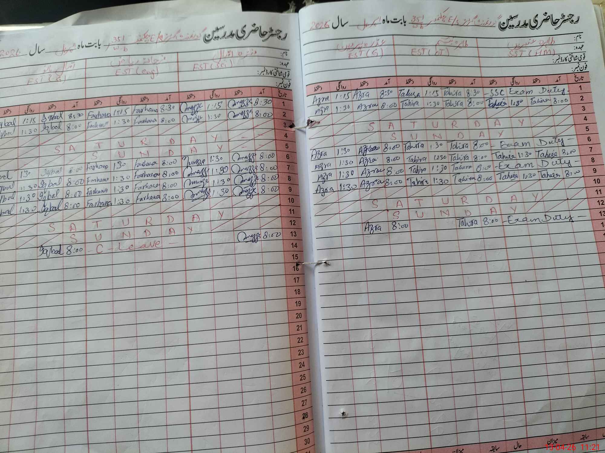 | 36**** | Ta**** Am**** | SST Science | Regular | 0 | 0 | 0 | 0 | 0 | 0 | 0 | 0 | 0 | Exam Duty |
