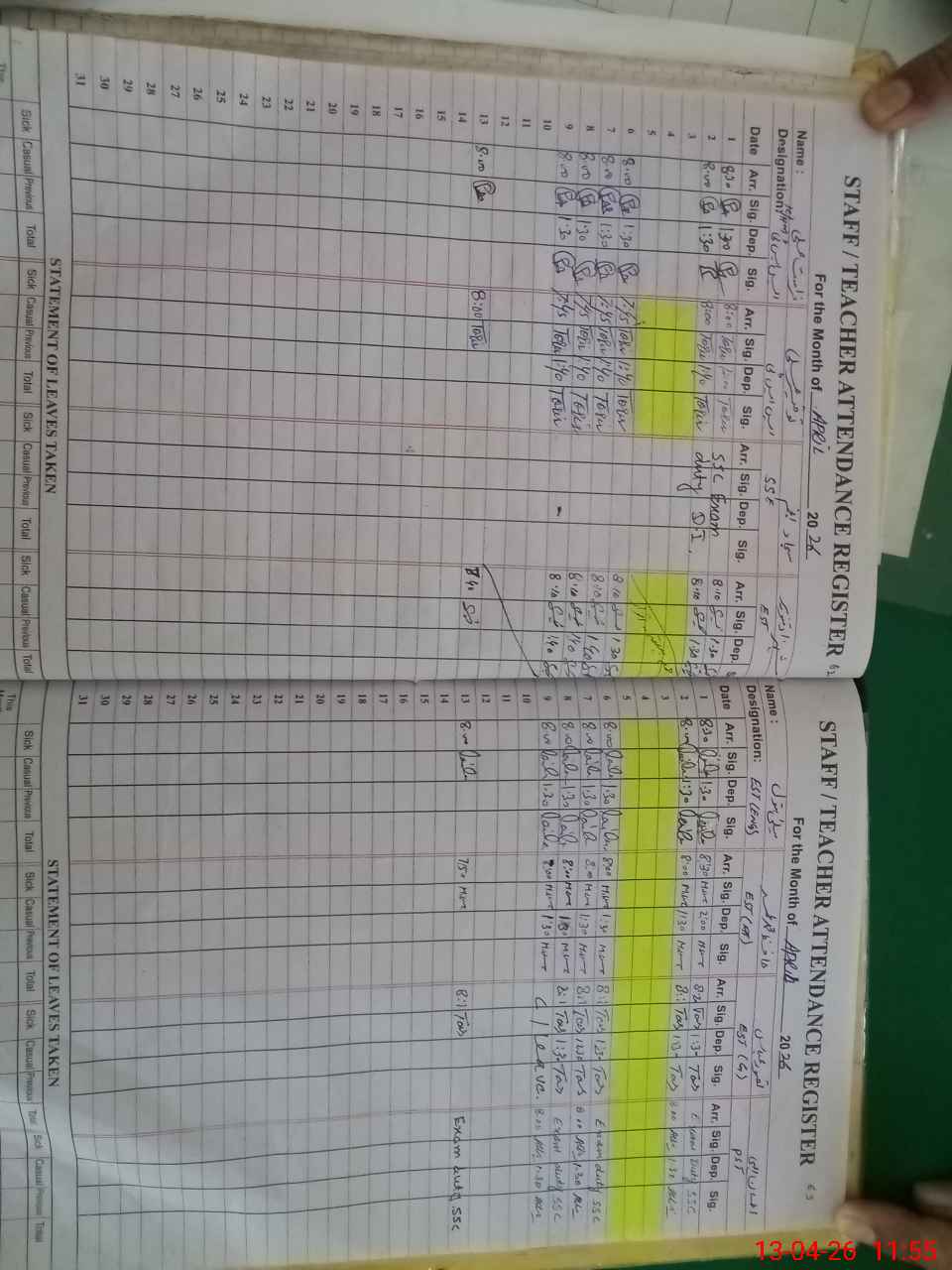 | 37**** | Ah**** El**** | PST Arts | Regular | 0 | 2 | 0 | 0 | 0 | 0 | 0 | 0 | 0 | Exam Duty |