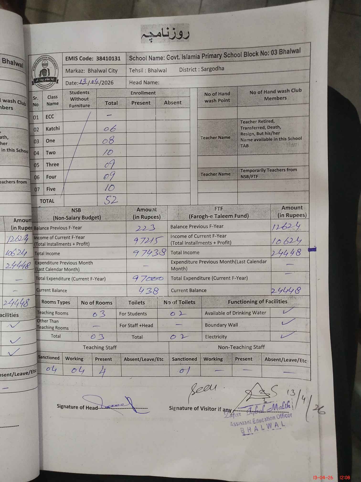 | EMIS Code: 38410131 | Name of School: GPS ISLAMIA BHALWAL BLOCK NO 3 | |||