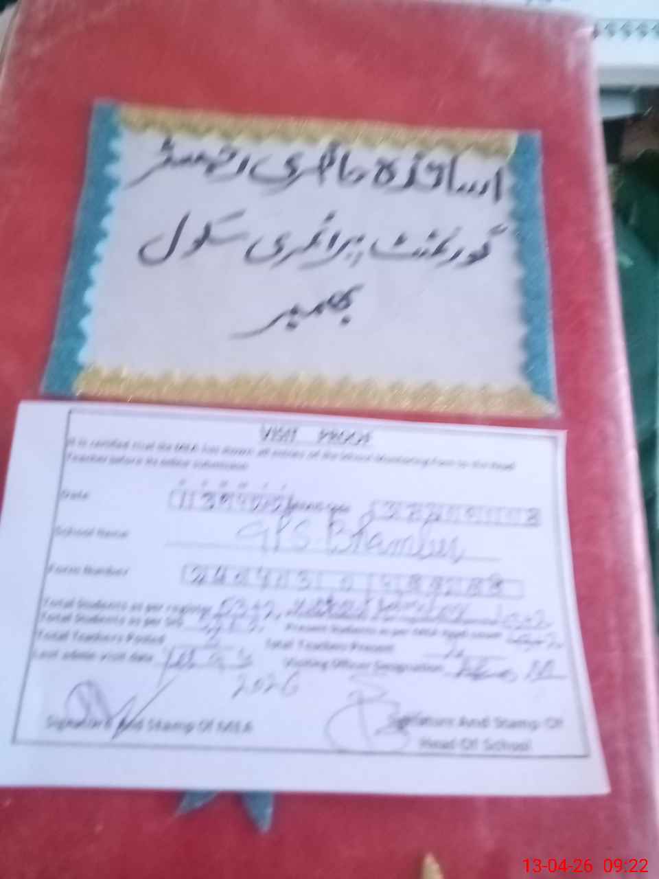 | EMIS Code: 37210118 | Name of School: GPS BHAMBER | |||