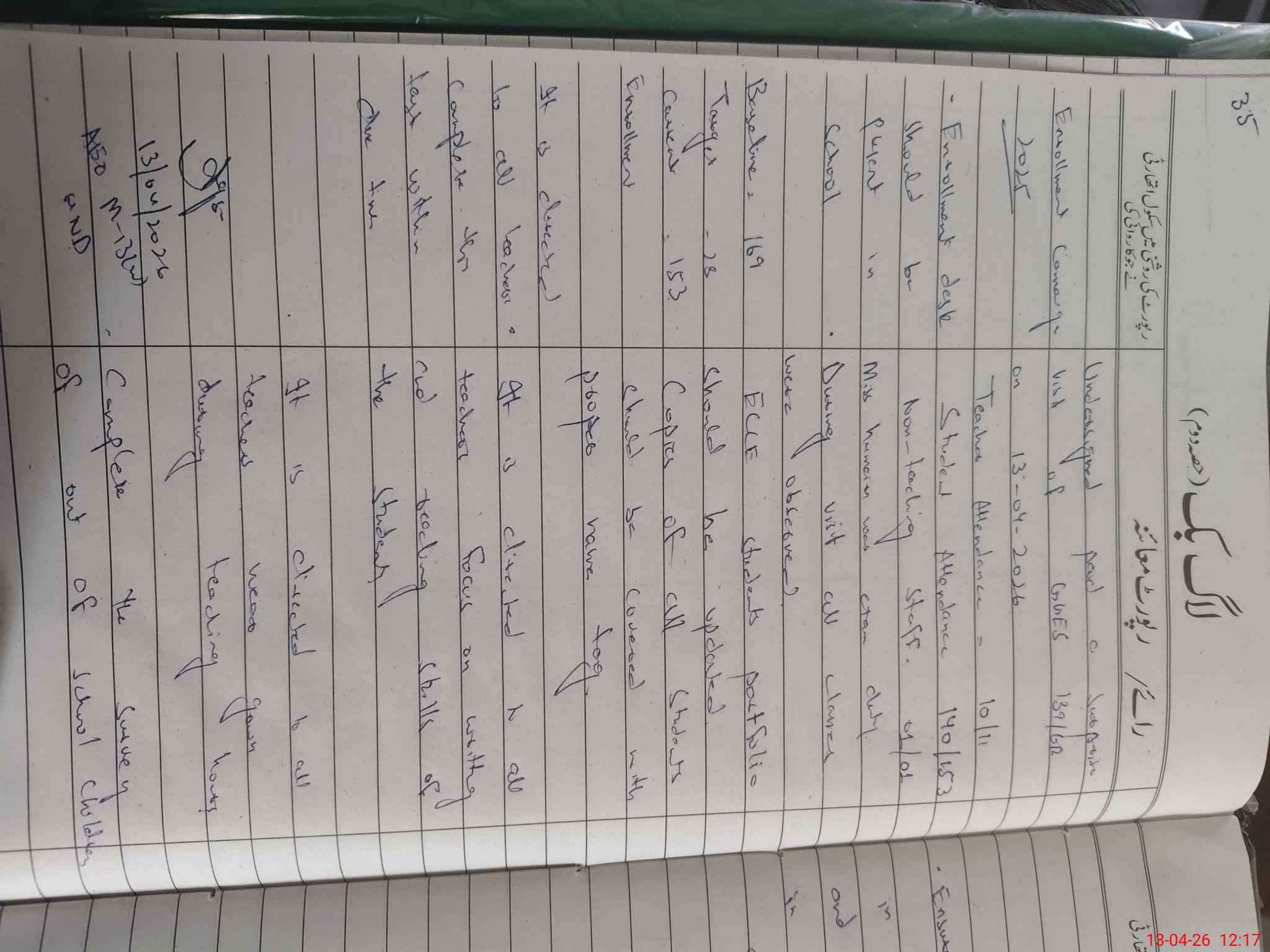 | Attendance Register | Head Teacher | MEA with School | Visit Proof |