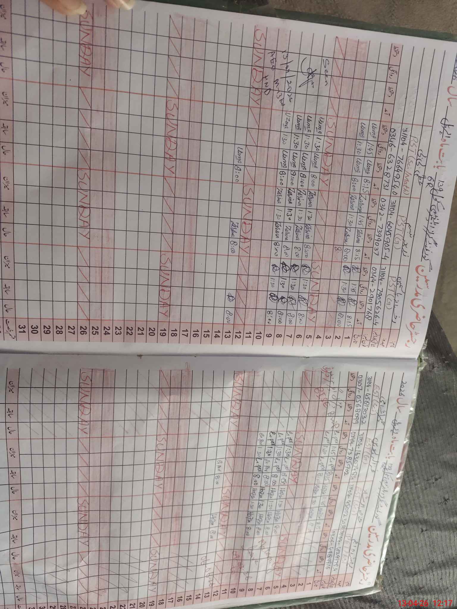 | 31**** | Hu**** Sh**** | EST Science | Regular | 0 | 0 | 0 | 0 | 0 | 0 | 0 | 0 | 0 | Exam Duty |