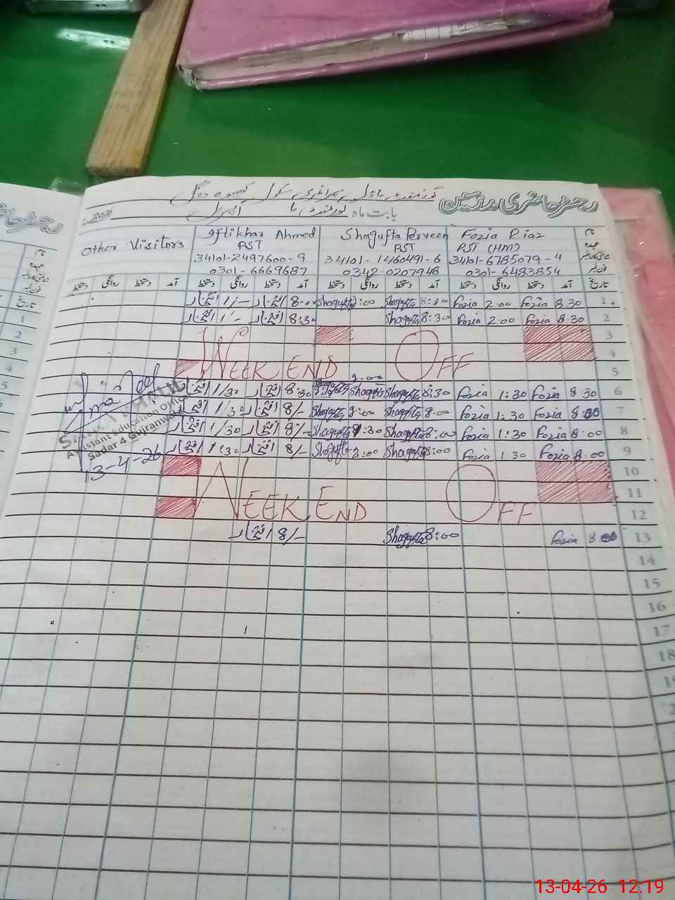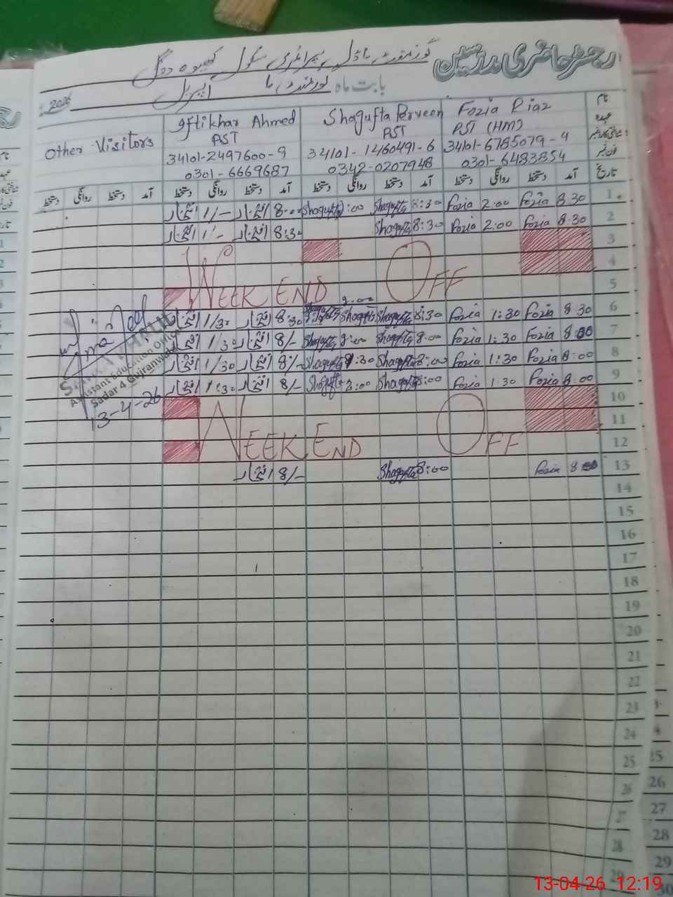 | Name: FO**** RI**** Designation: (School Headmaster's/Headmistress's) PST Phone/Cell Number: 03**** |