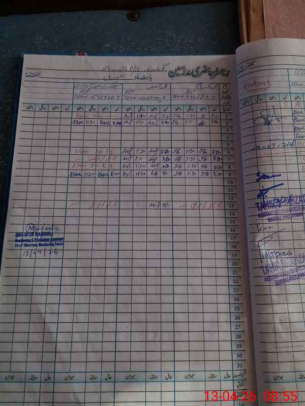 | Monitoring Date: 13-04-2026 | Start Time: 13-04-2026 08:36 AM | End Time: 13-04-2026 08:56 AM | Name of MEA: MU**** MU**** RA**** | |