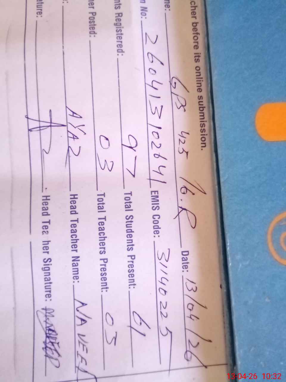 | EMIS Code: 31140225 | Name of School: GPS CHAK NO 425/6-R | |||