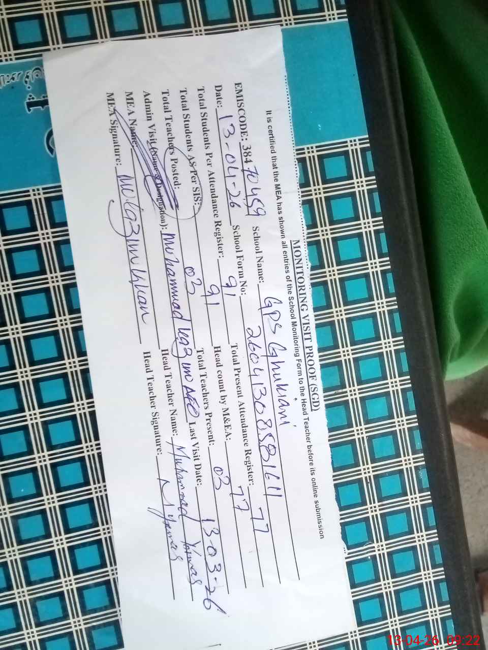 | EMIS Code: 38470459 | Name of School: GPS GHUKIANI | |||