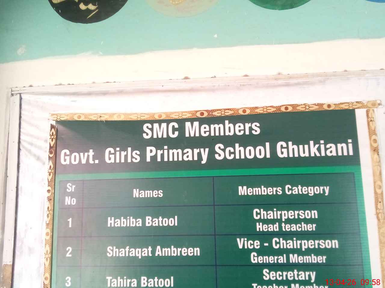 | EMIS Code: 38470736 | Name of School: GGPS GHUKIANI | |||