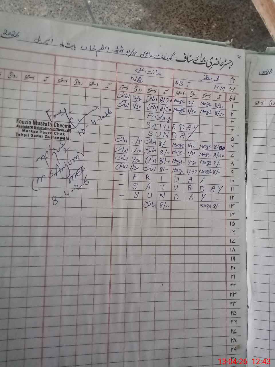 | Name: Mu**** Mu**** Designation: (School Headmaster's/Headmistress's) PST Phone/Cell Number: 03**** |