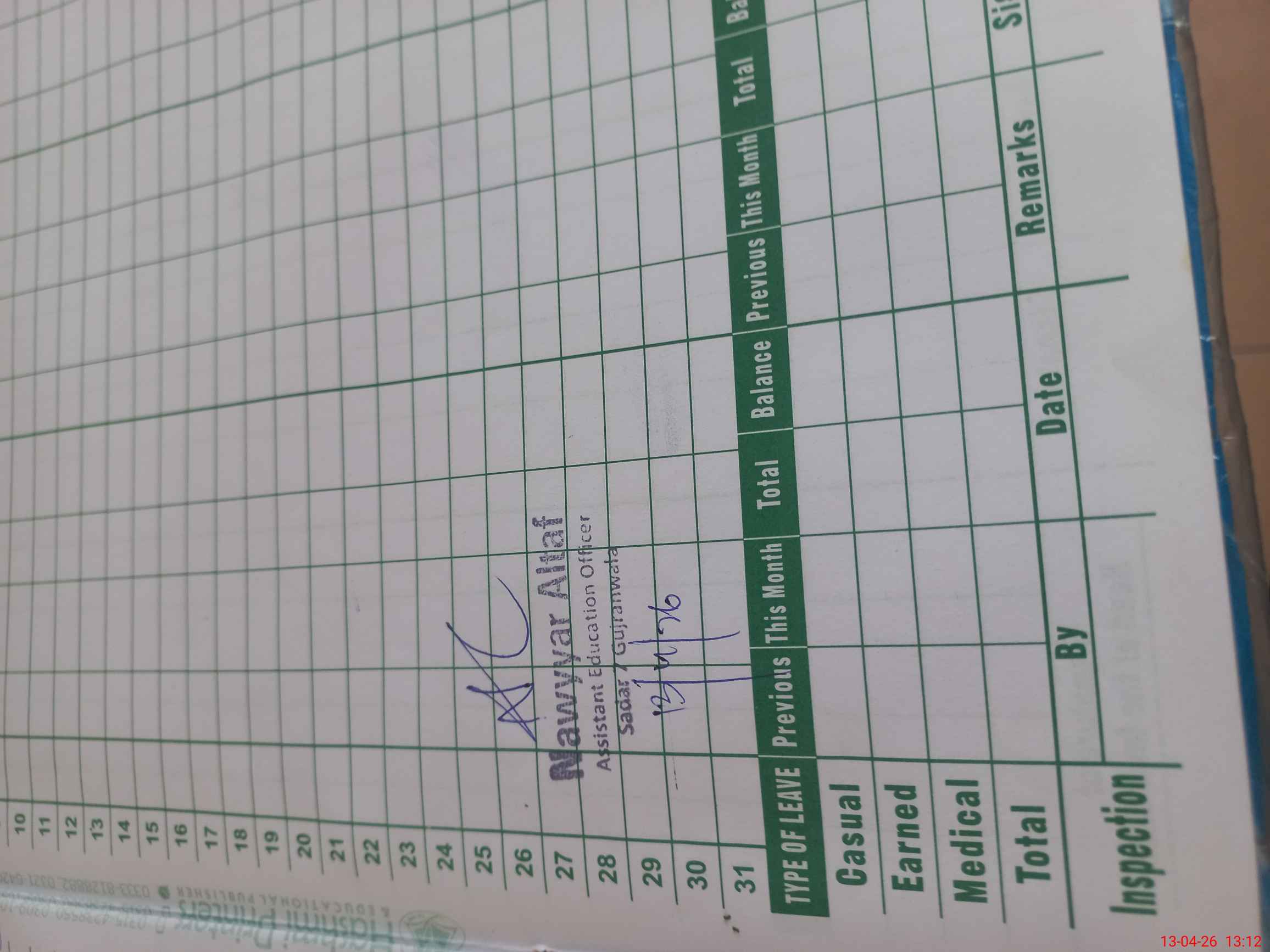 | CNIC | Full Name | Designation | R/C | Absence During Last Calender Month |