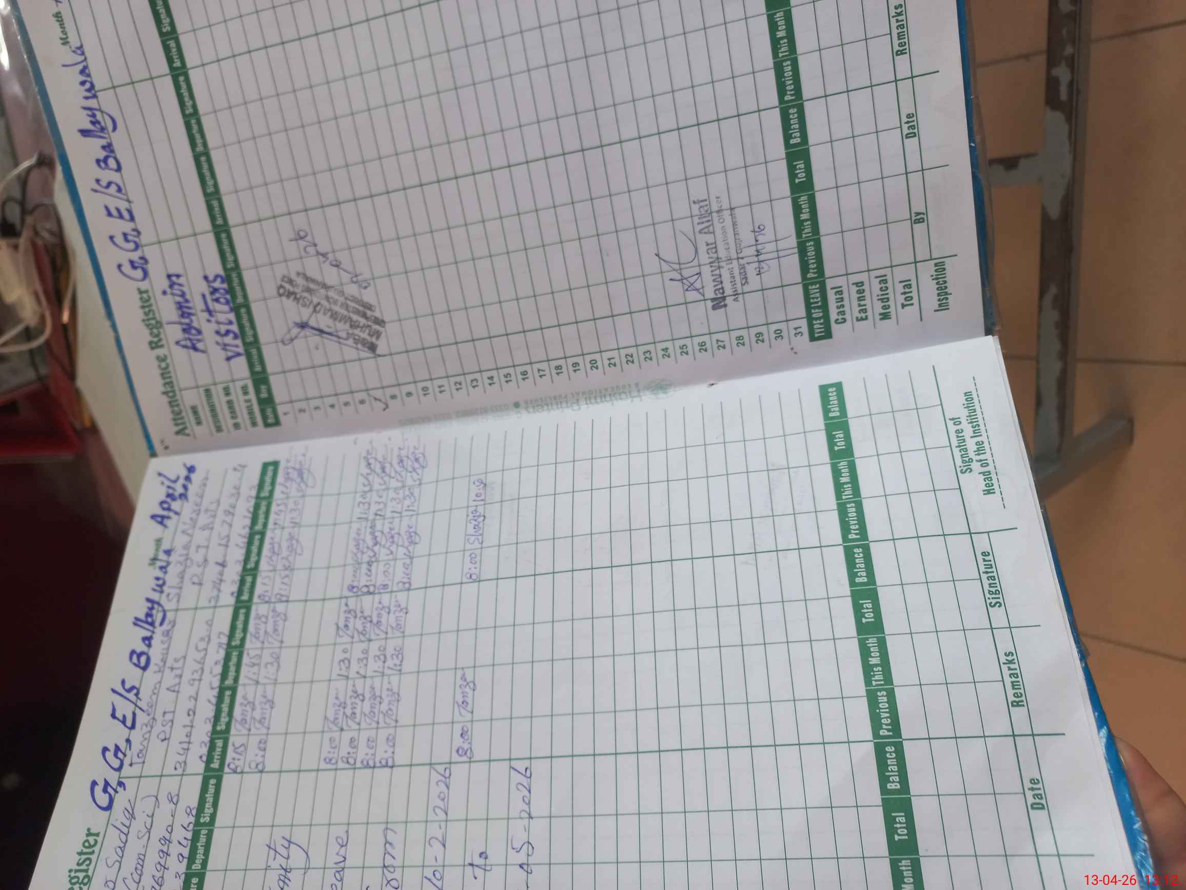 | Attendance Register | Head Teacher | MEA with School | Visit Proof |