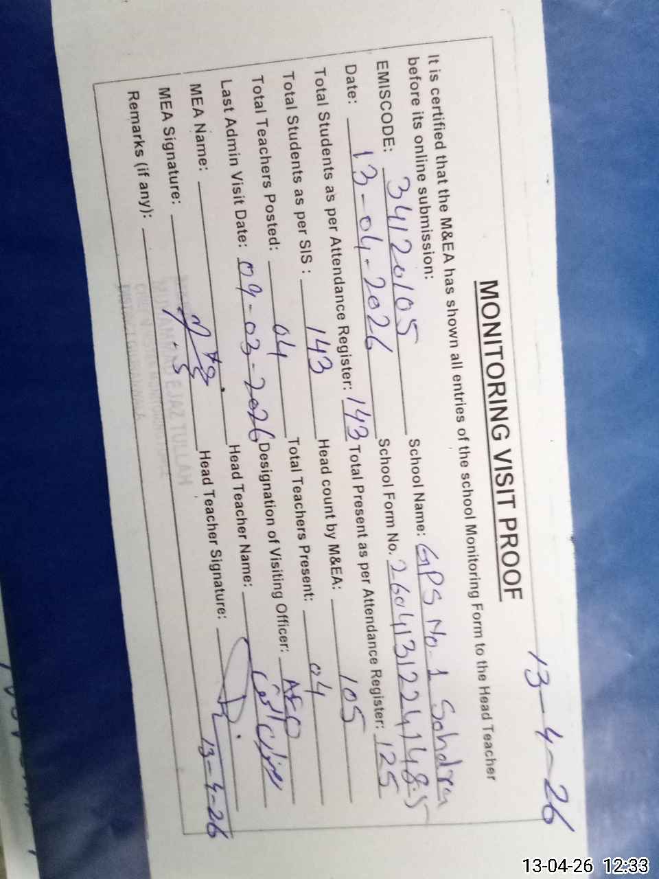 | EMIS Code: 34120105 | Name of School: GPS SOHDRA NO.1 | |||