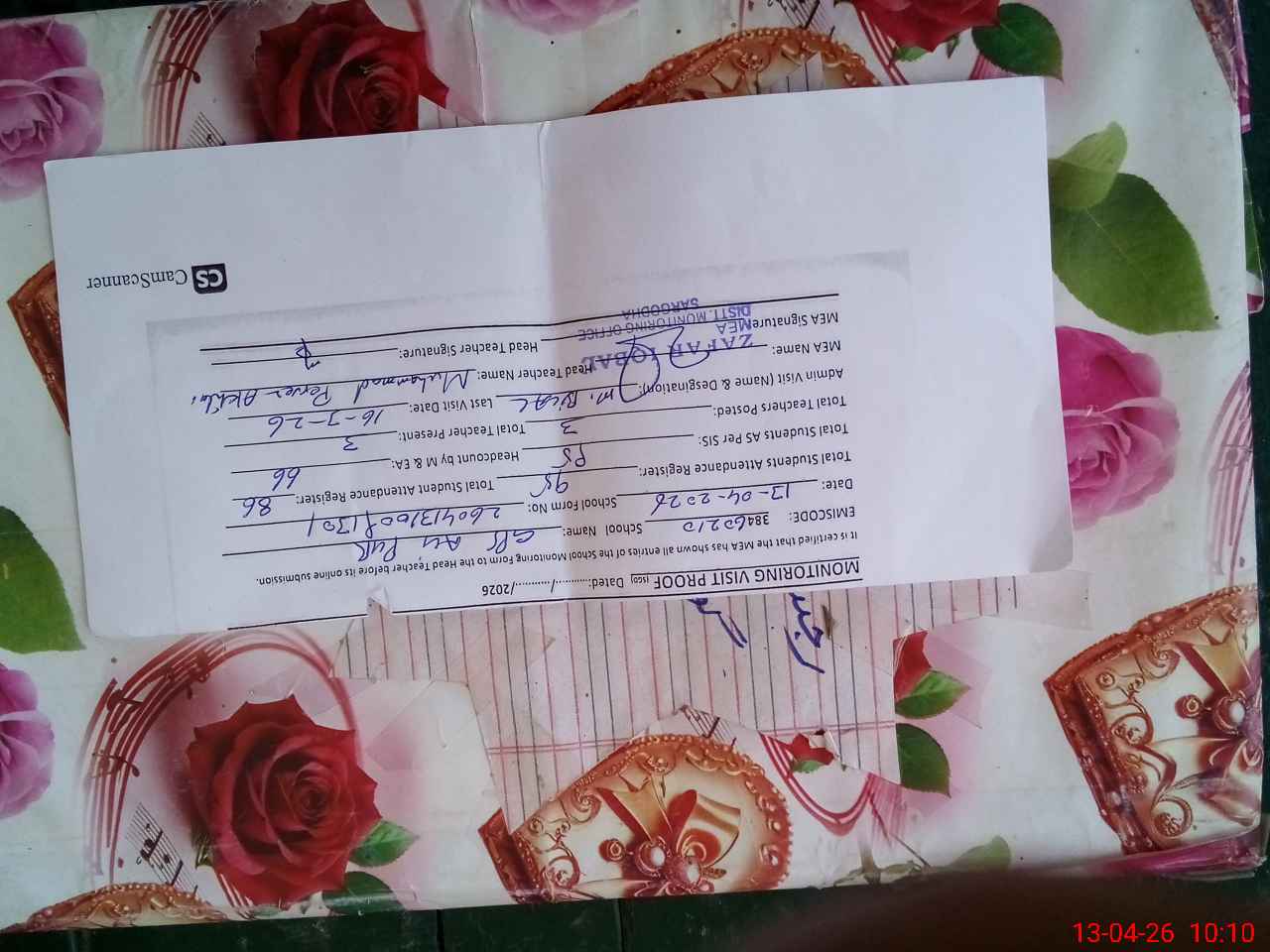| Attendance Register | Head Teacher | MEA with School | Visit Proof |