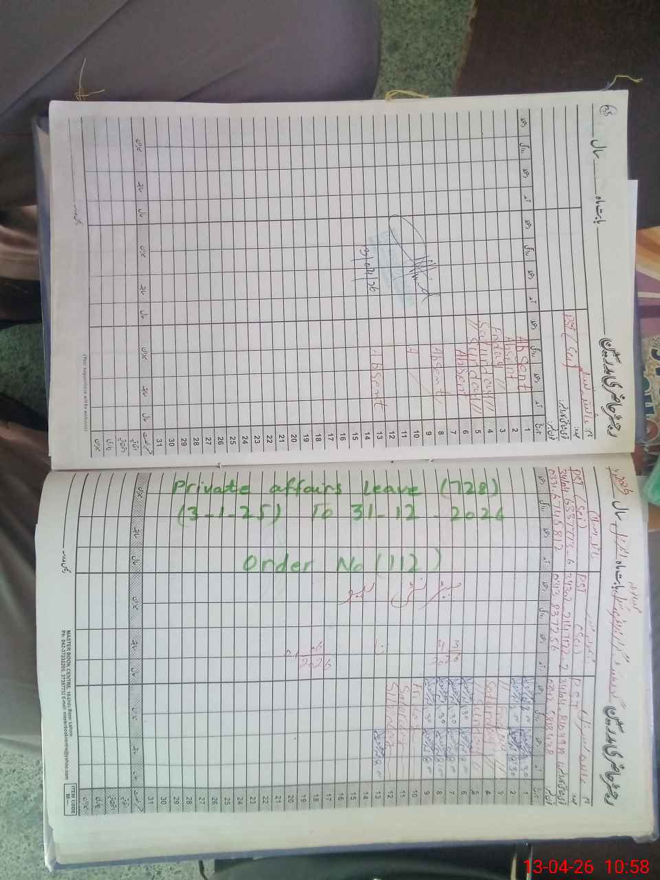 | CNIC | Full Name | Designation | R/C | Absence During Last Calender Month |