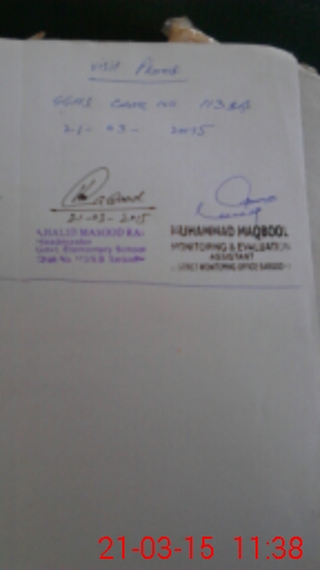 | School Visited by School Health & Nutrition Supervisor (No. of Visits) | 1 | Name1: | TAHIR MEHMOOD | Name2: | |