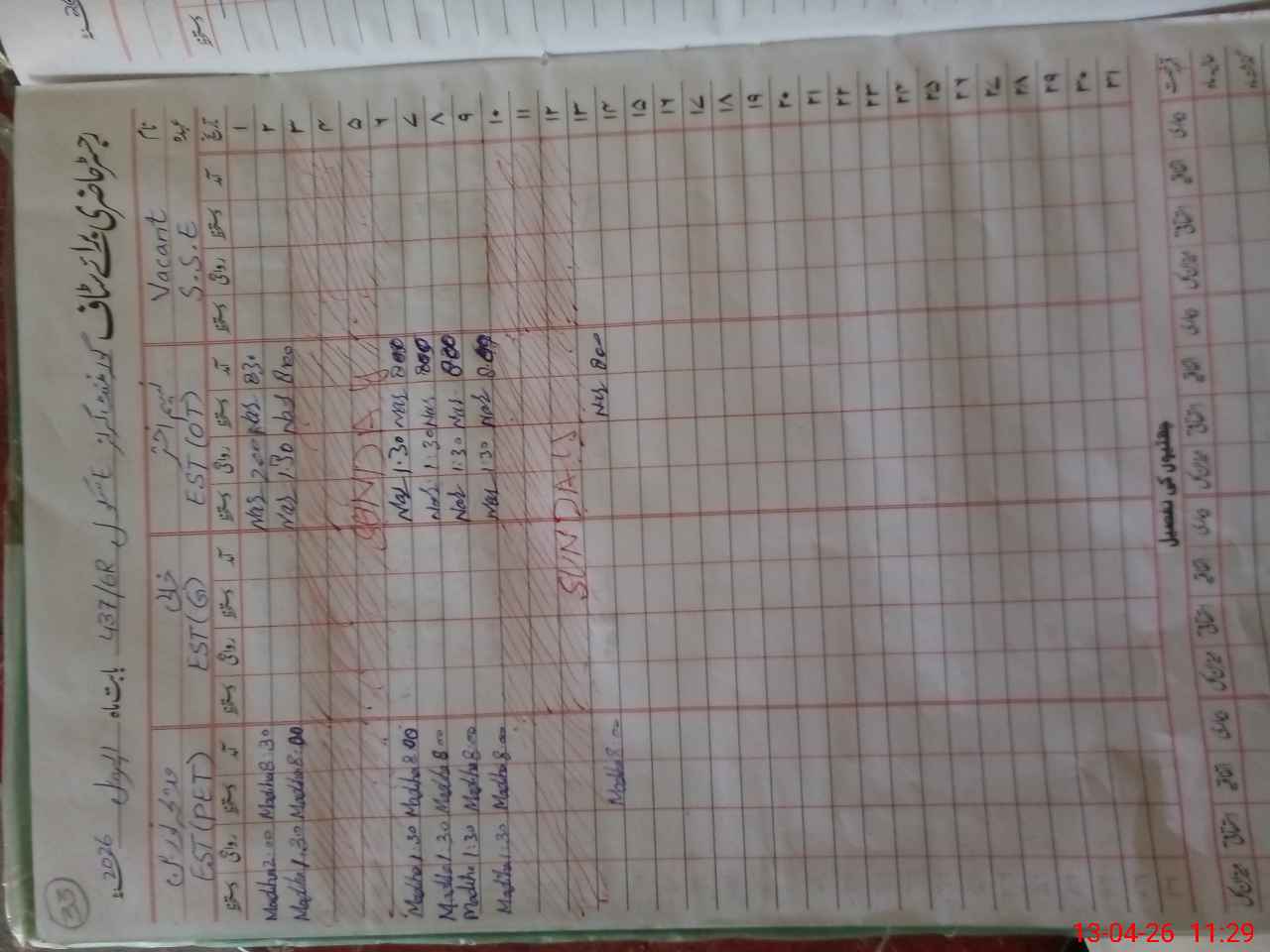 | CNIC | Full Name | Designation | R/C | Absence During Last Calender Month |