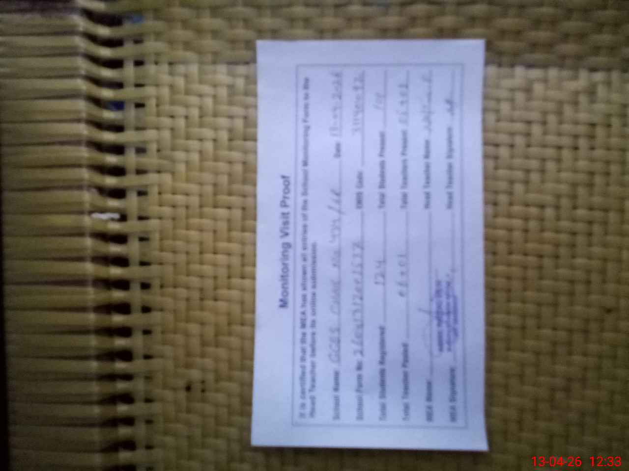 | Attendance Register | Head Teacher | MEA with School | Visit Proof |