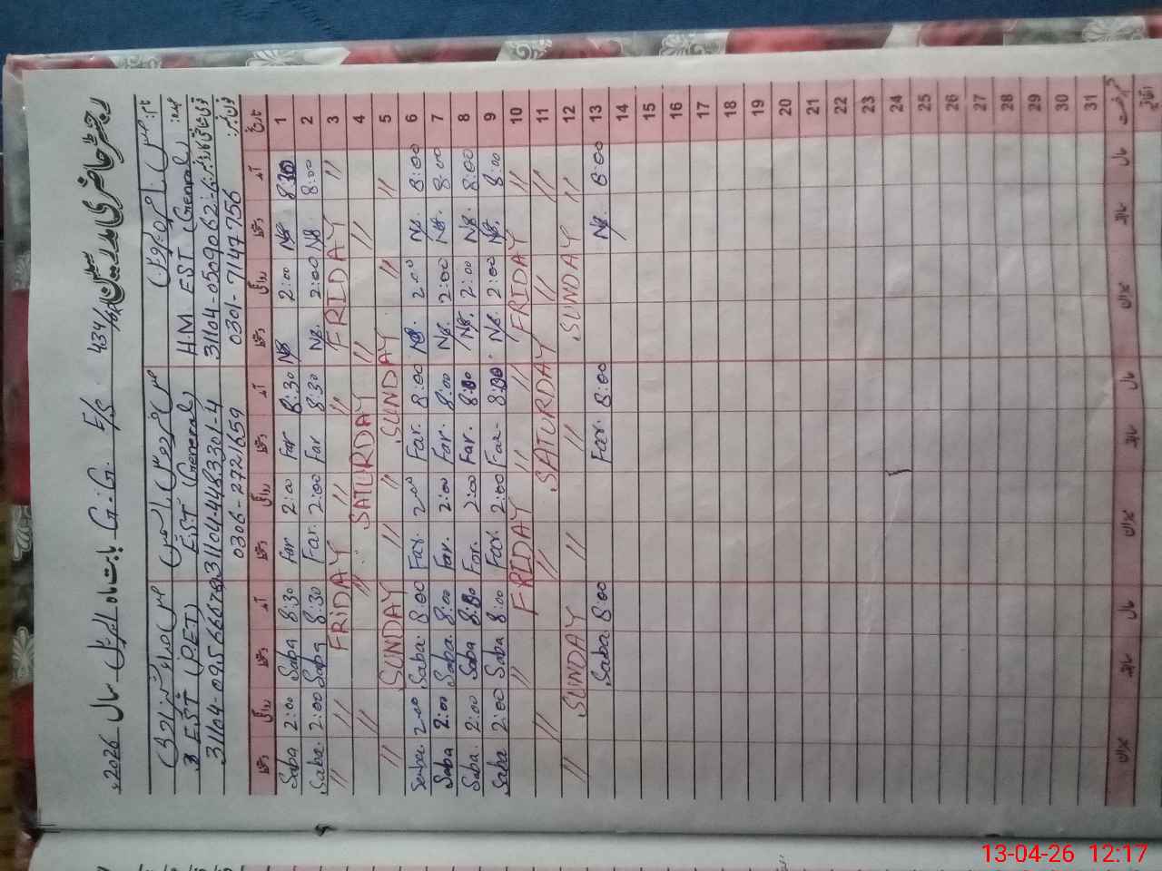 | 31**** | Sa**** Ba**** | PST Science/Maths | Regular | 0 | 0 | 0 | 0 | 0 | 0 | 0 | 0 | 0 | Casual |