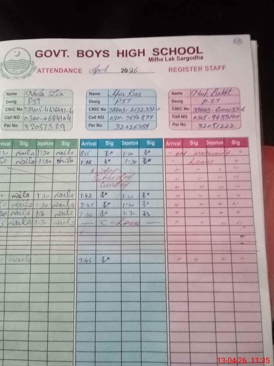 | Name: MU**** AA**** IQ**** Designation: (School Headmaster's/Headmistress's) I/C Head Master Phone/Cell Number: 03**** |