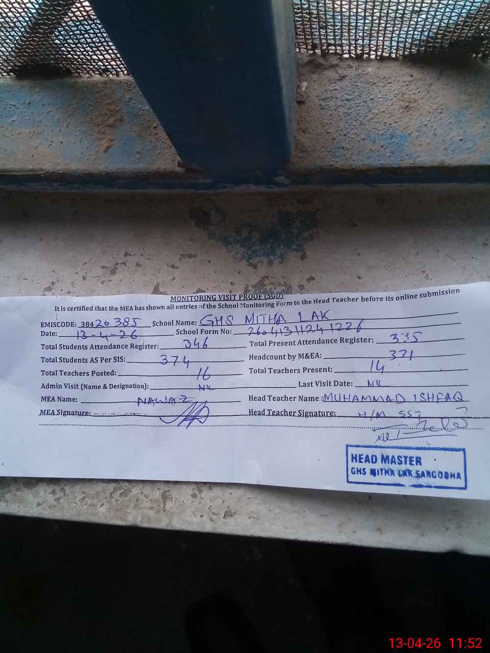 | EMIS Code: 38420385 | Name of School: GHS MITHA LAK | |||