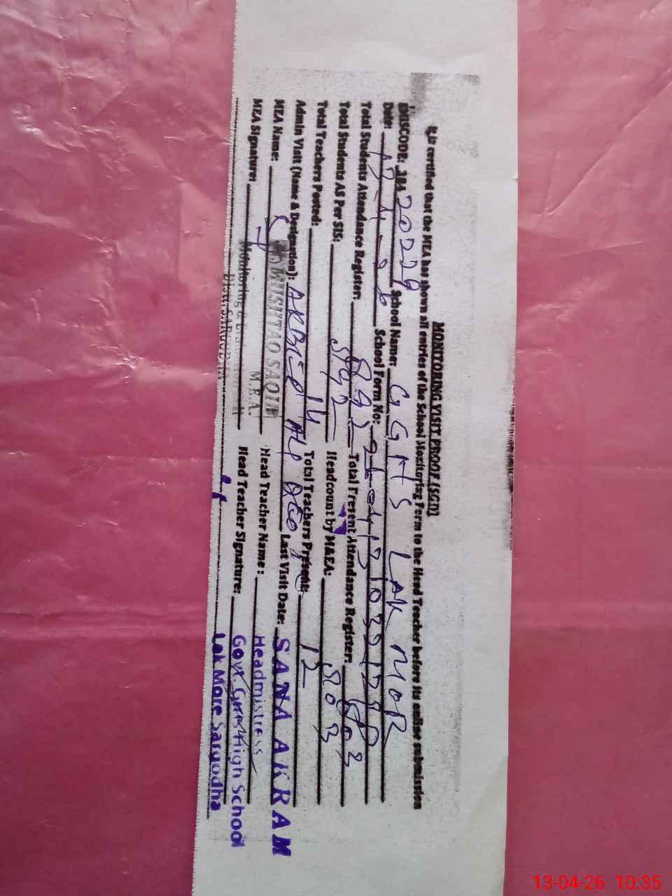 | EMIS Code: 38420229 | Name of School: GGHS LAK MORE | |||