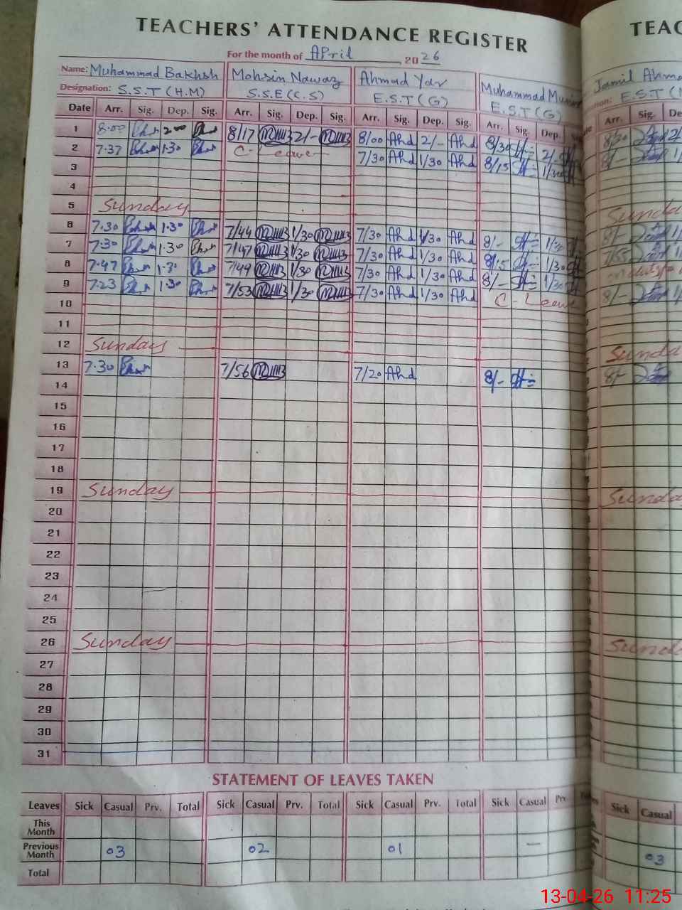 | 38**** | Sy**** Zi**** UlHa**** Sh**** | PST Arts | Regular | 0 | 0 | 0 | 0 | 0 | 0 | 0 | 0 | 0 | Exam Duty |