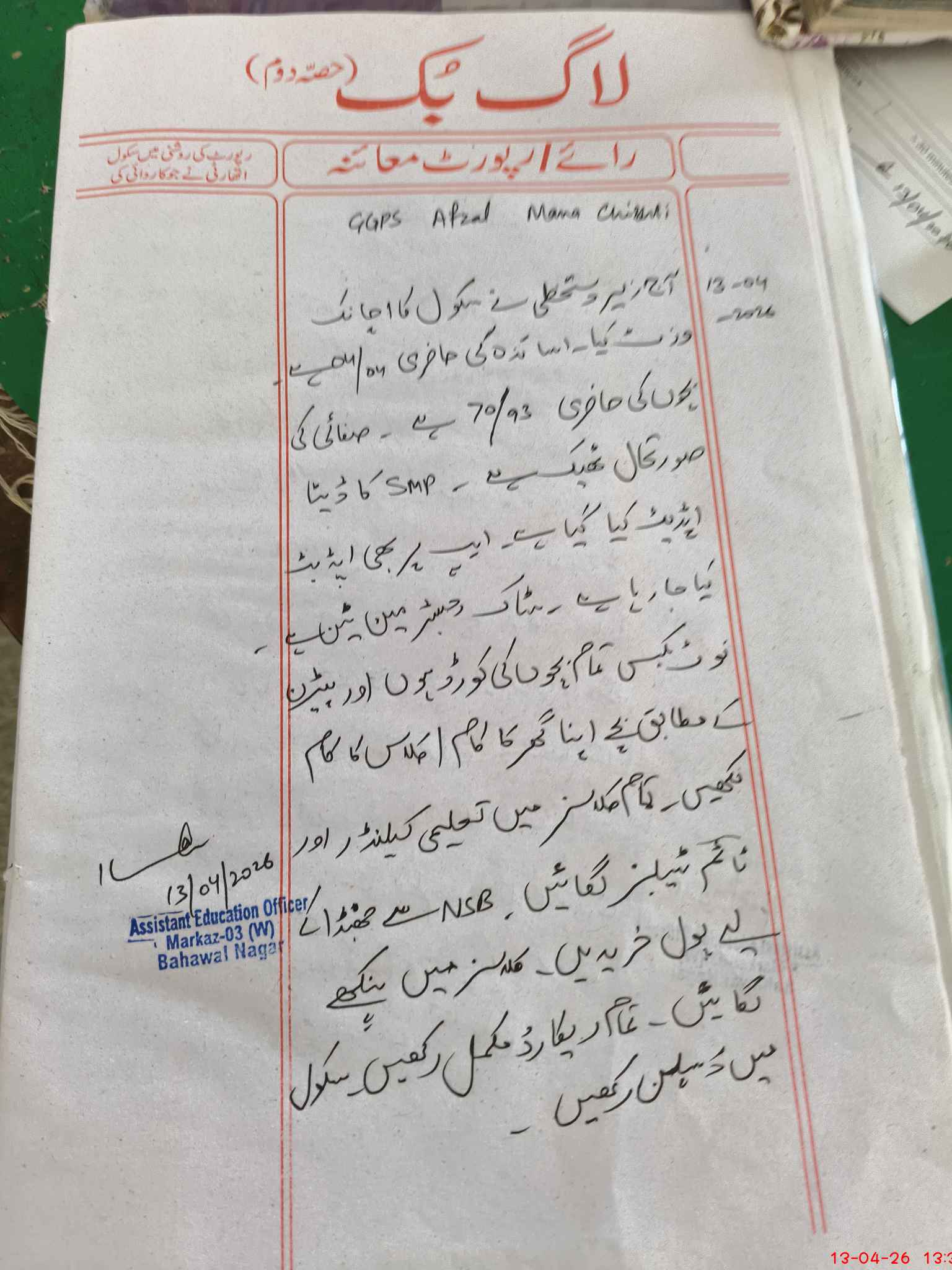| EMIS Code: 31110362 | Name of School: GGPS AFZAL MANA CHISHTI | |||