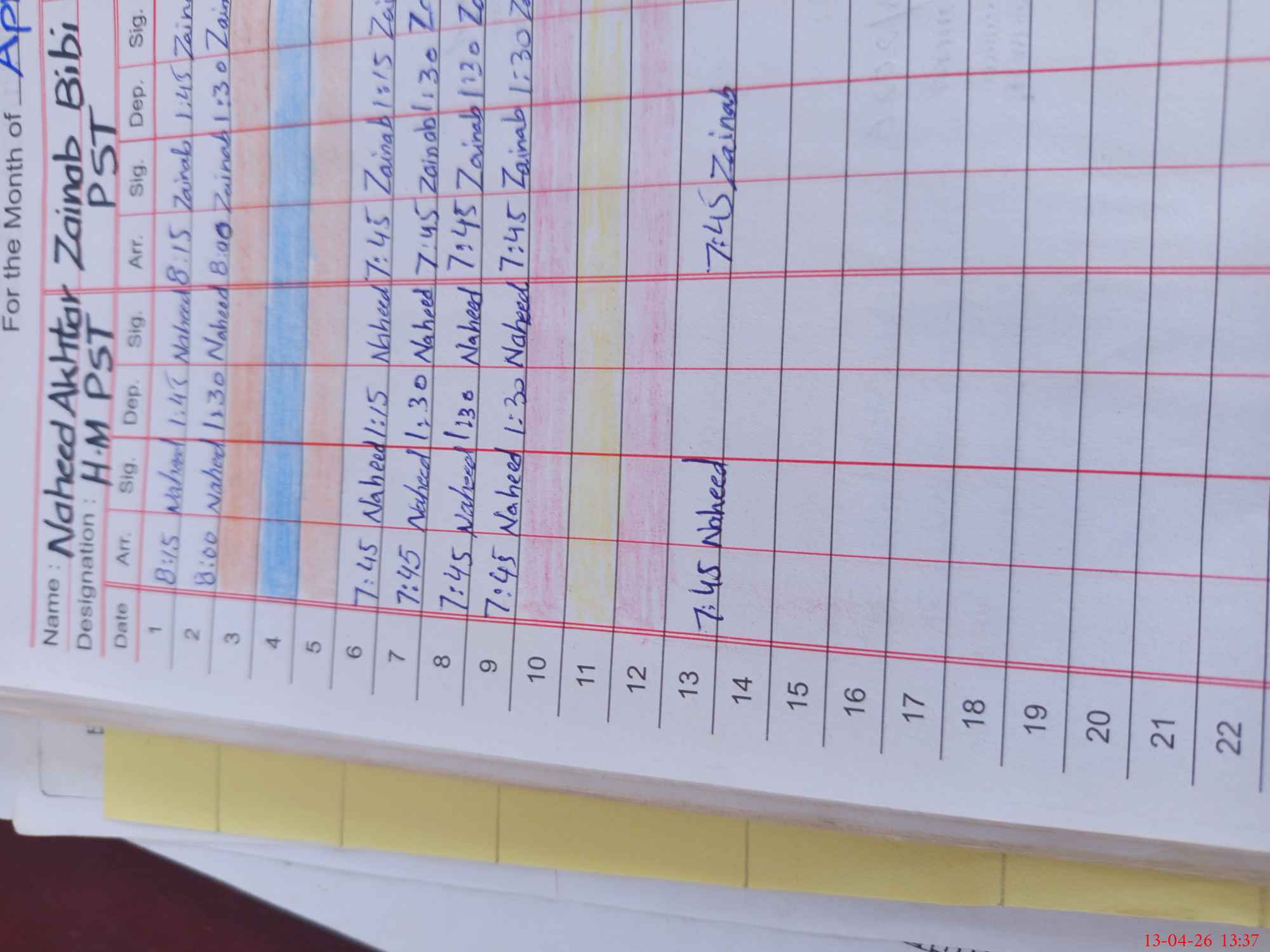 | Name: Na**** Ak**** Designation: (School Headmaster's/Headmistress's) PST Phone/Cell Number: 03**** |