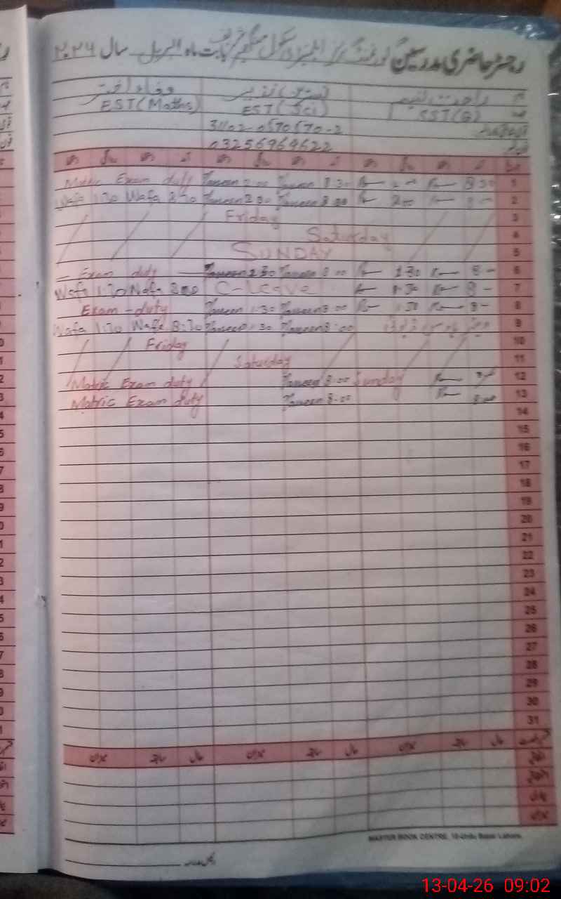 | 31**** | Wa**** Ak**** | EST Maths | Regular | 1 | 4 | 0 | 0 | 0 | 0 | 0 | 0 | 1 | Exam Duty |