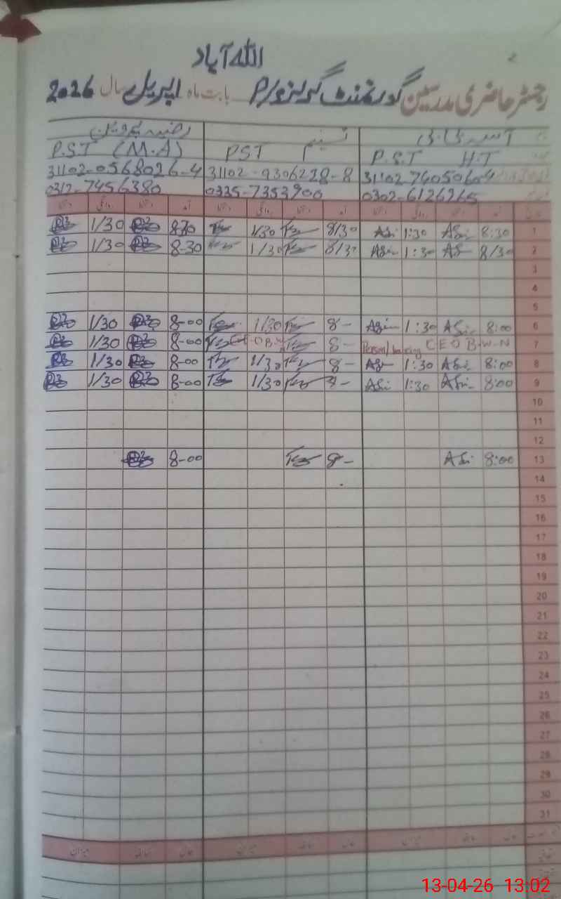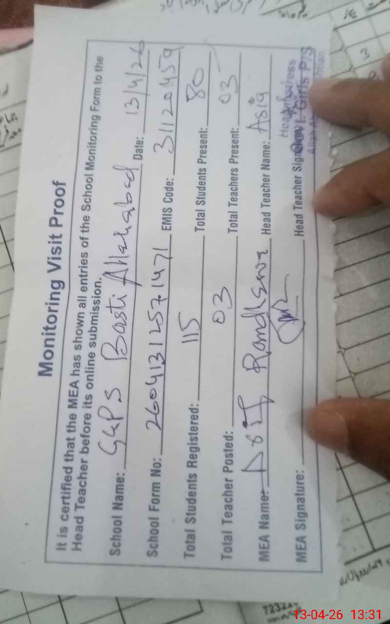 | EMIS Code: 31120459 | Name of School: GGPS BASTI ALLAH ABAD | |||